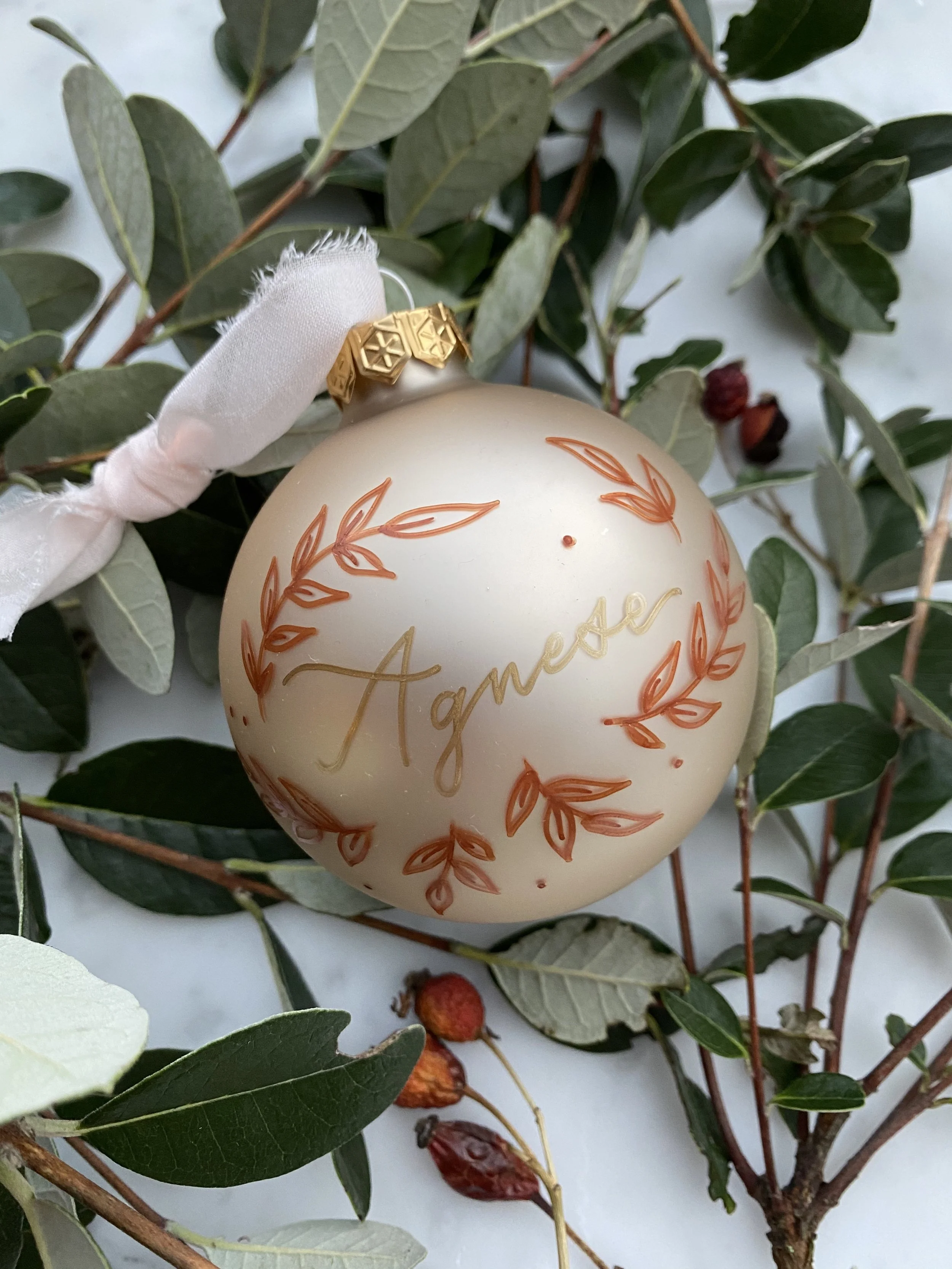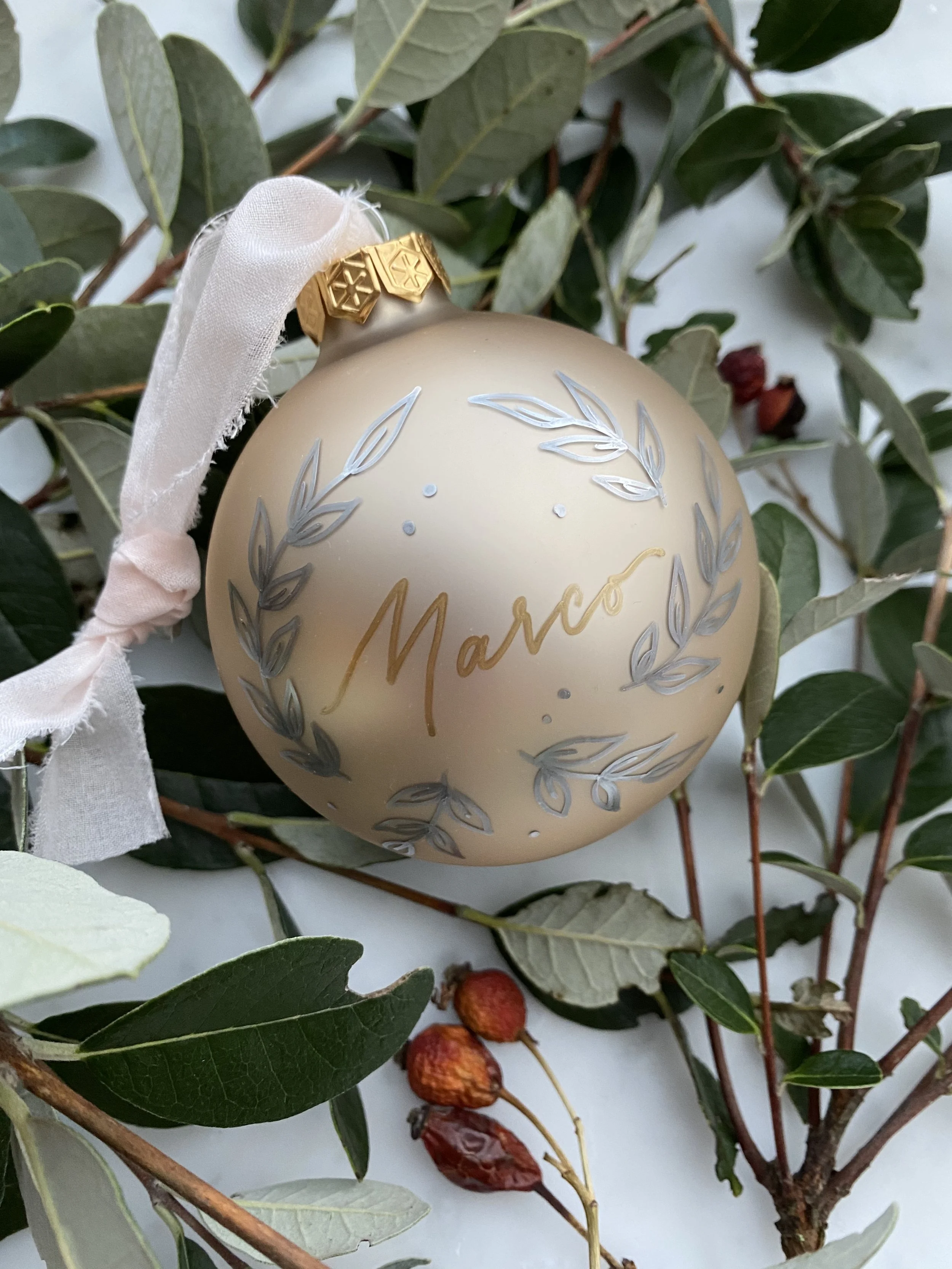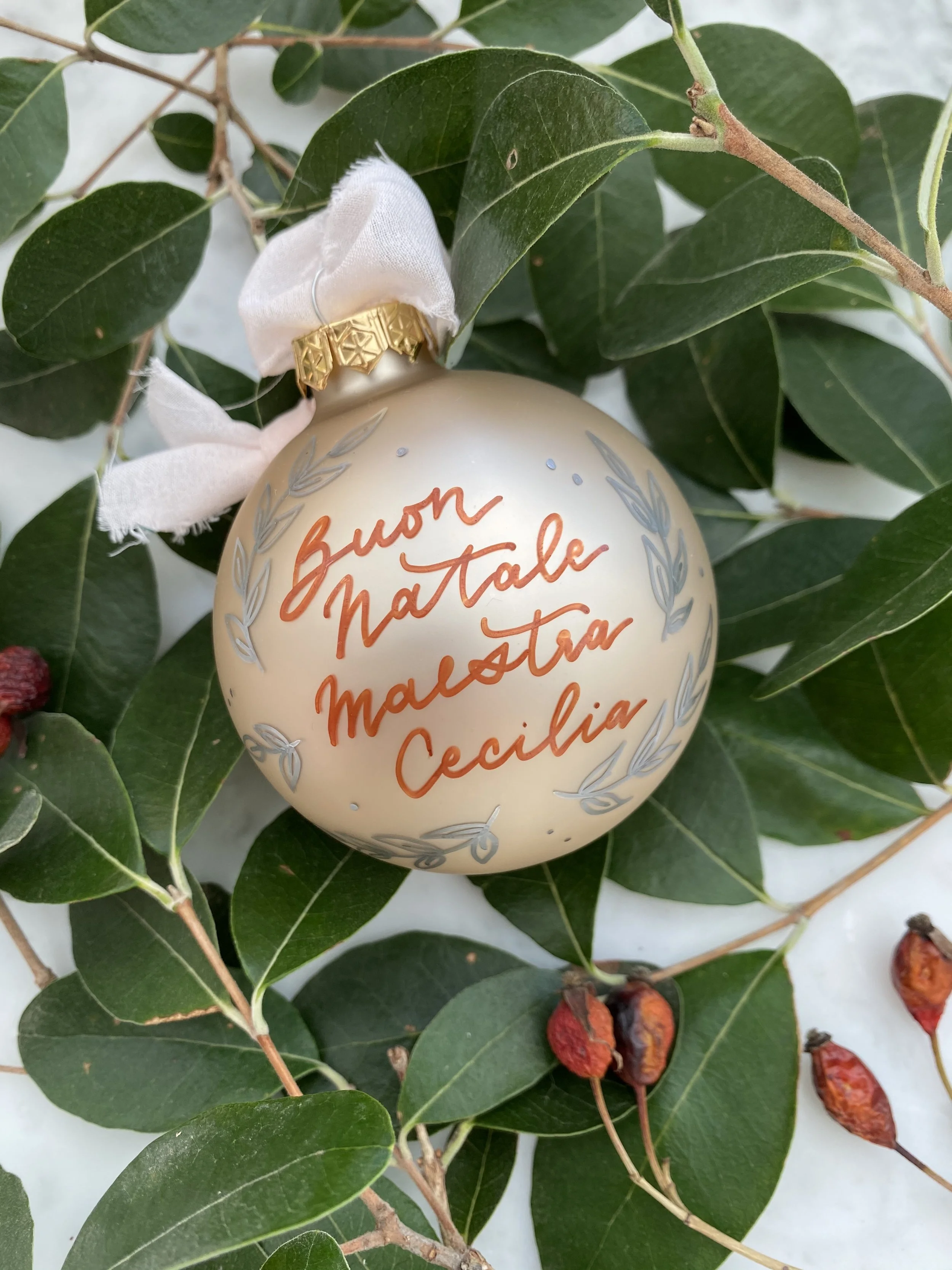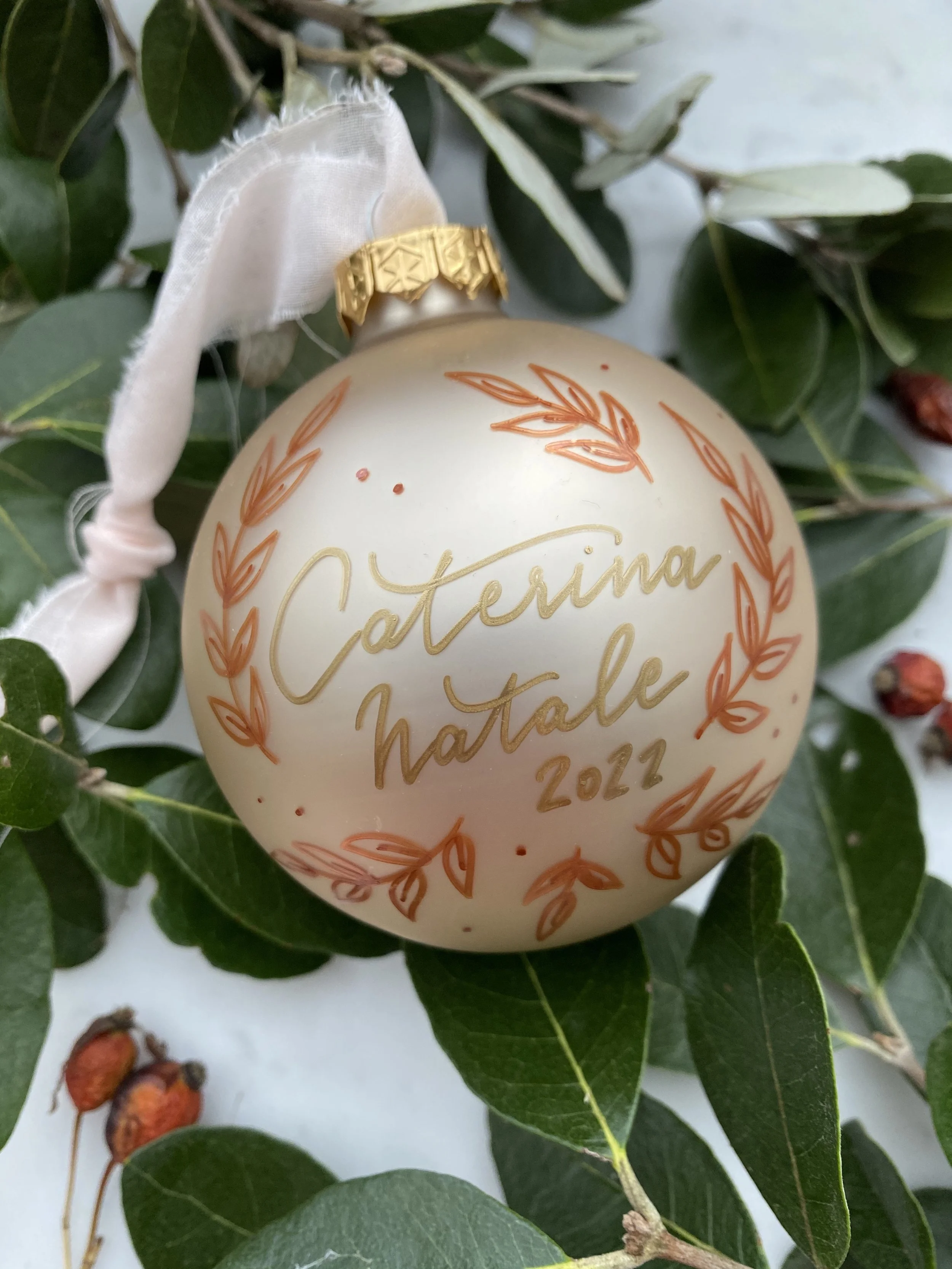 Pallina in vetro CHAMPAGNE opaca di Natale PERSONALIZZATA