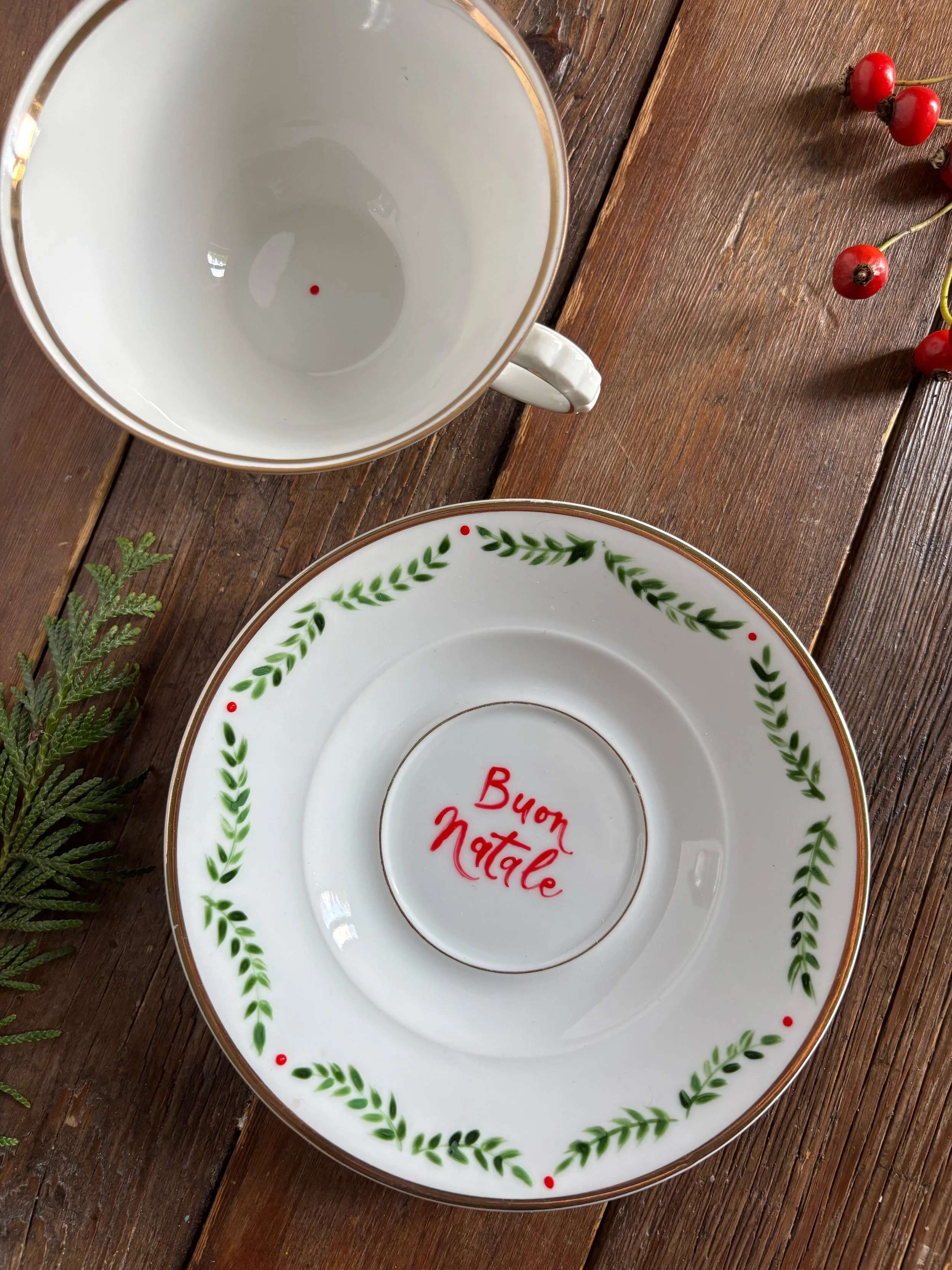 Biglietto natalizio con motivo di pattinatori sul ghiaccio stampato su carta pregiata martellata, effetto acquarello, con busta in coordinato.
