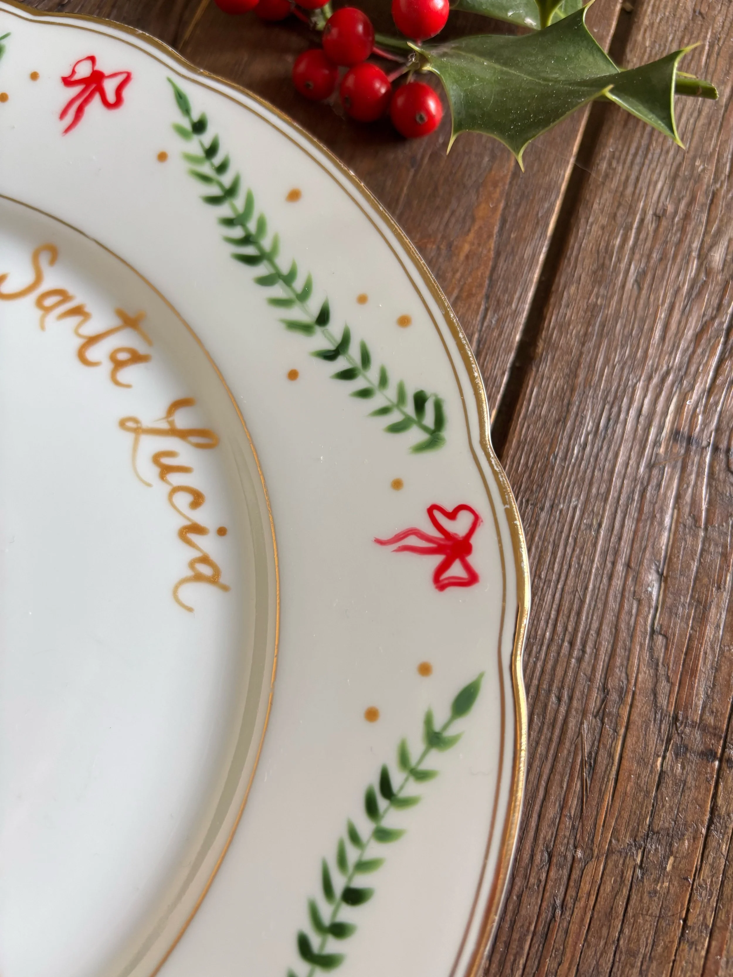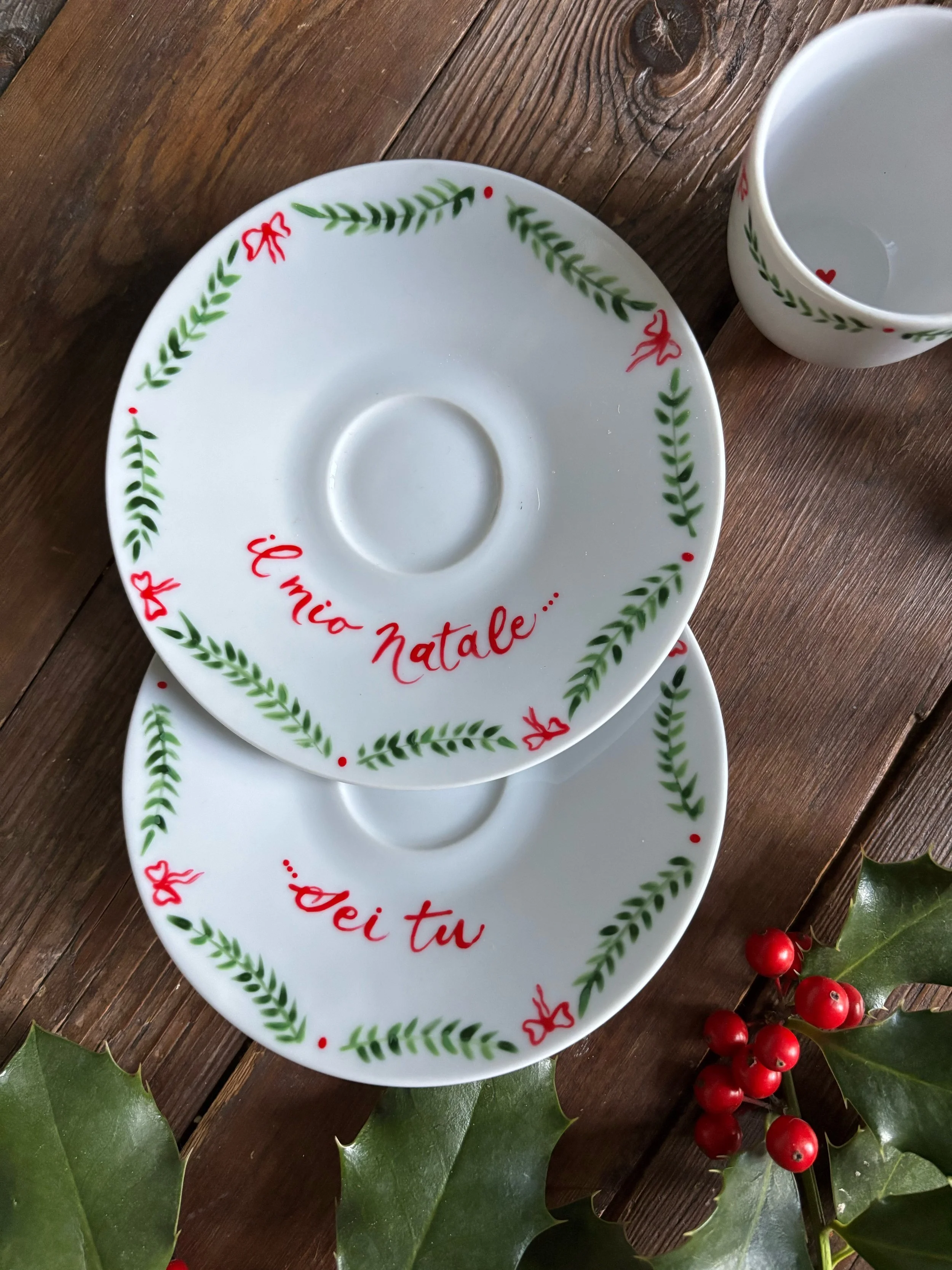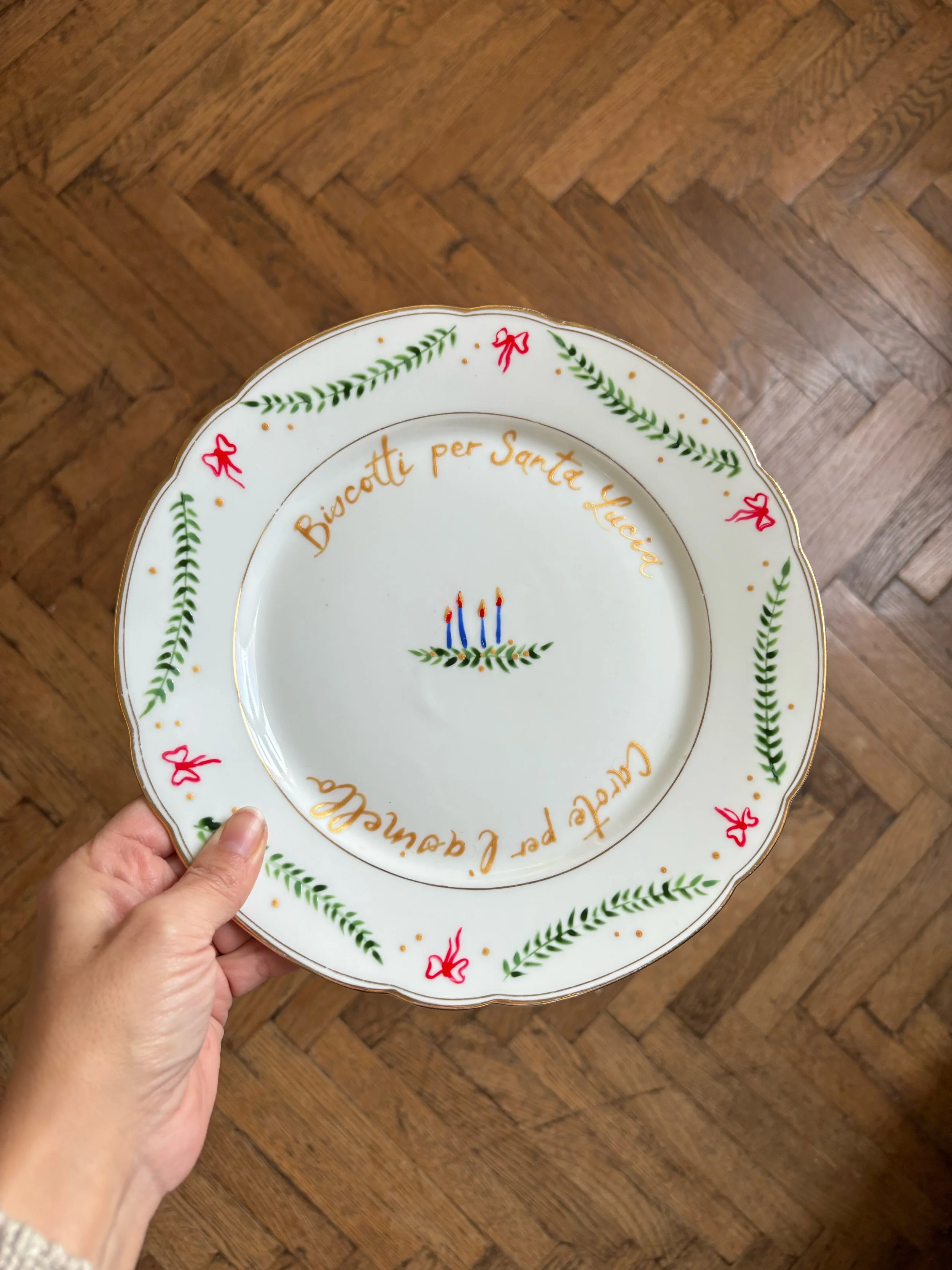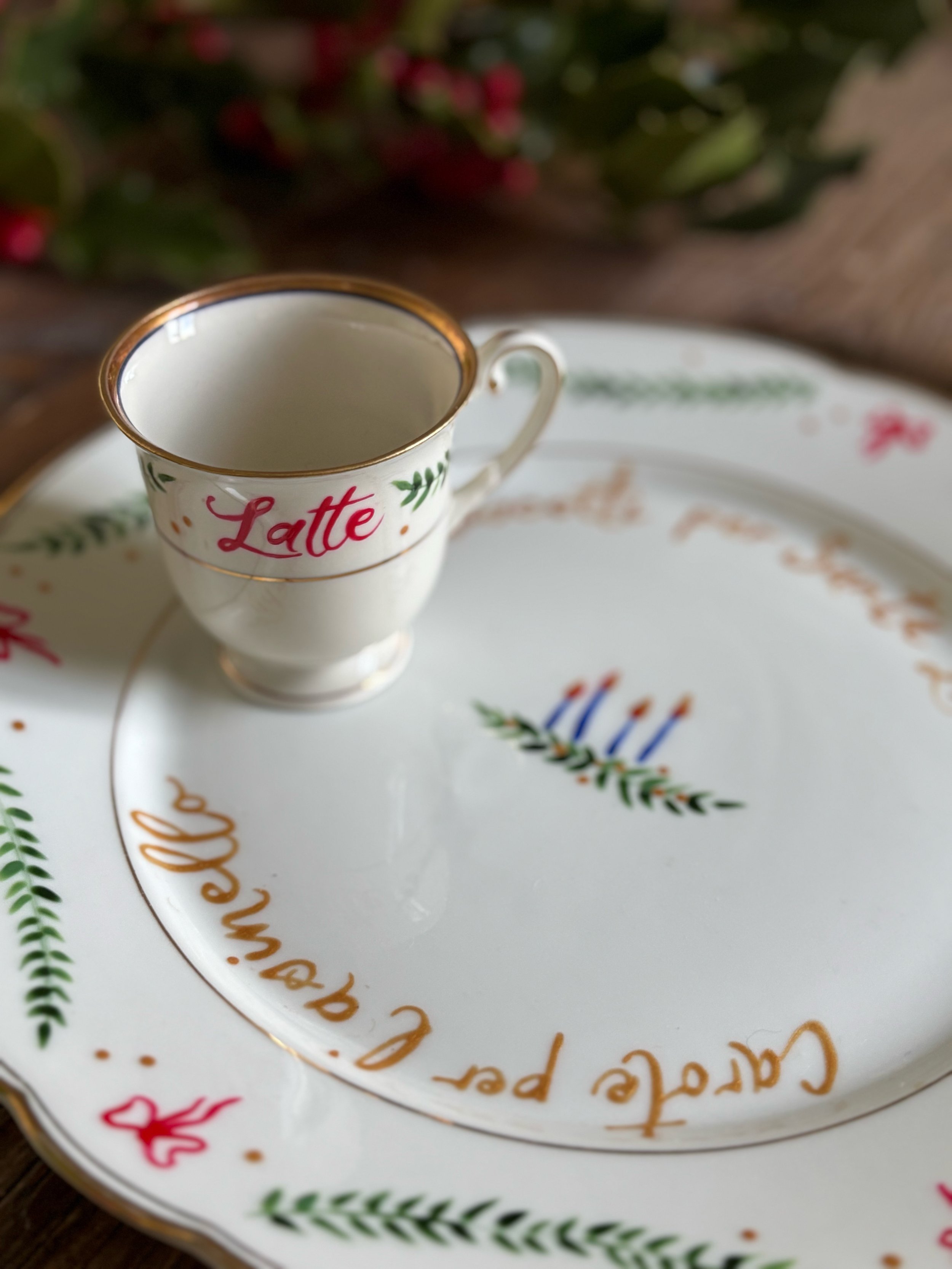 Piattino da te in porcellana dipinto a mano, marcato Table Top, made in Italy, moderno con filo oro.