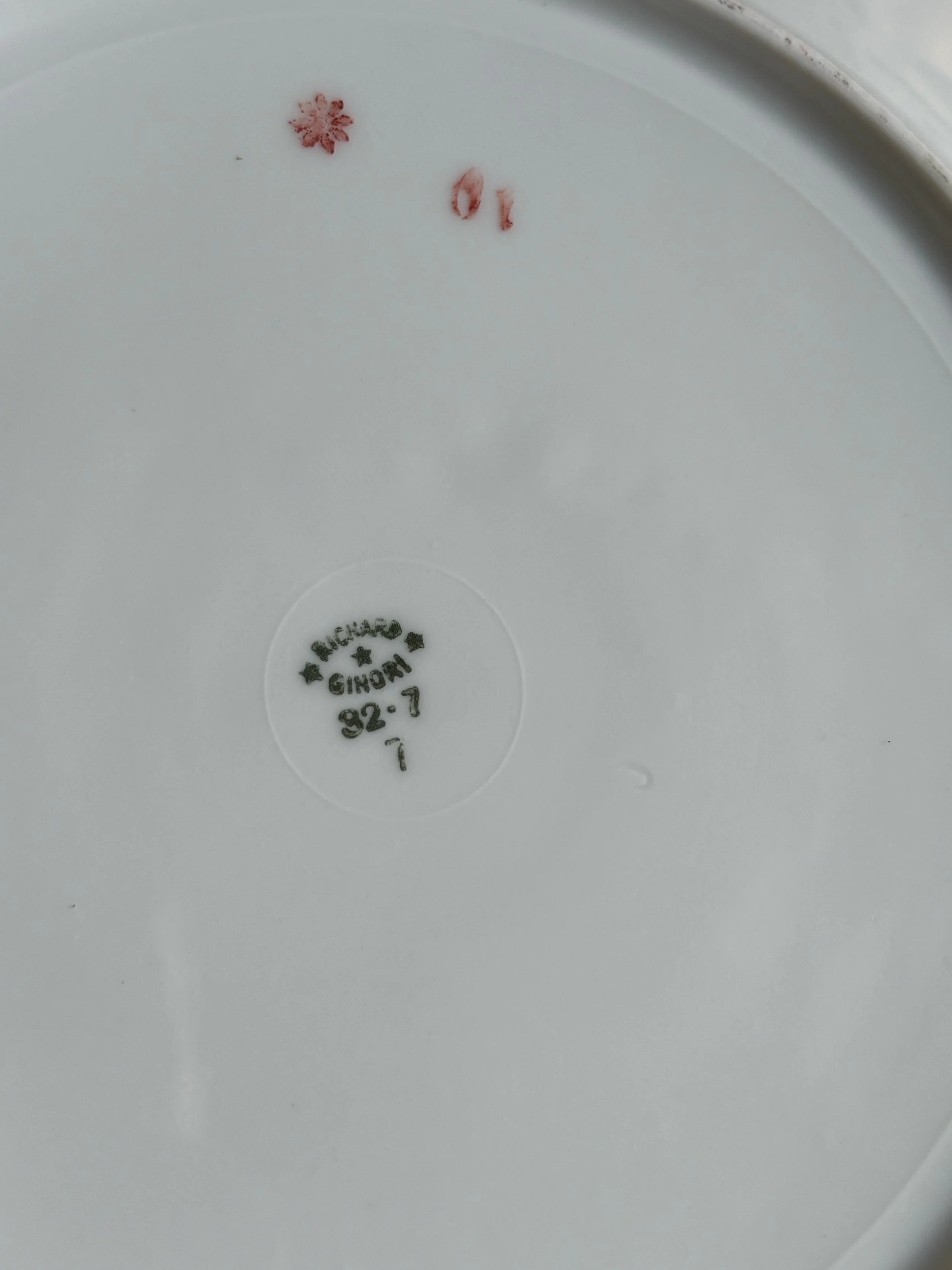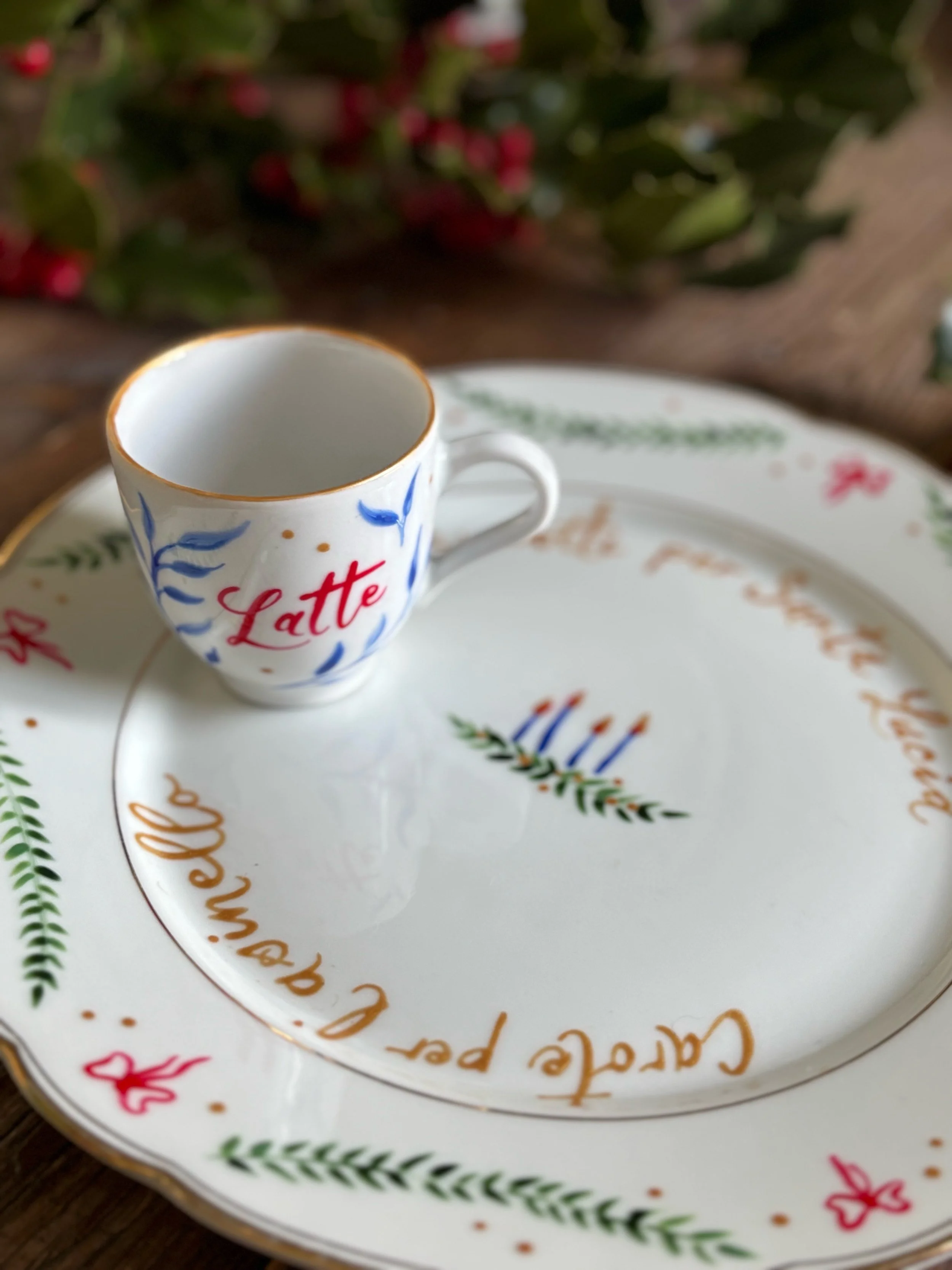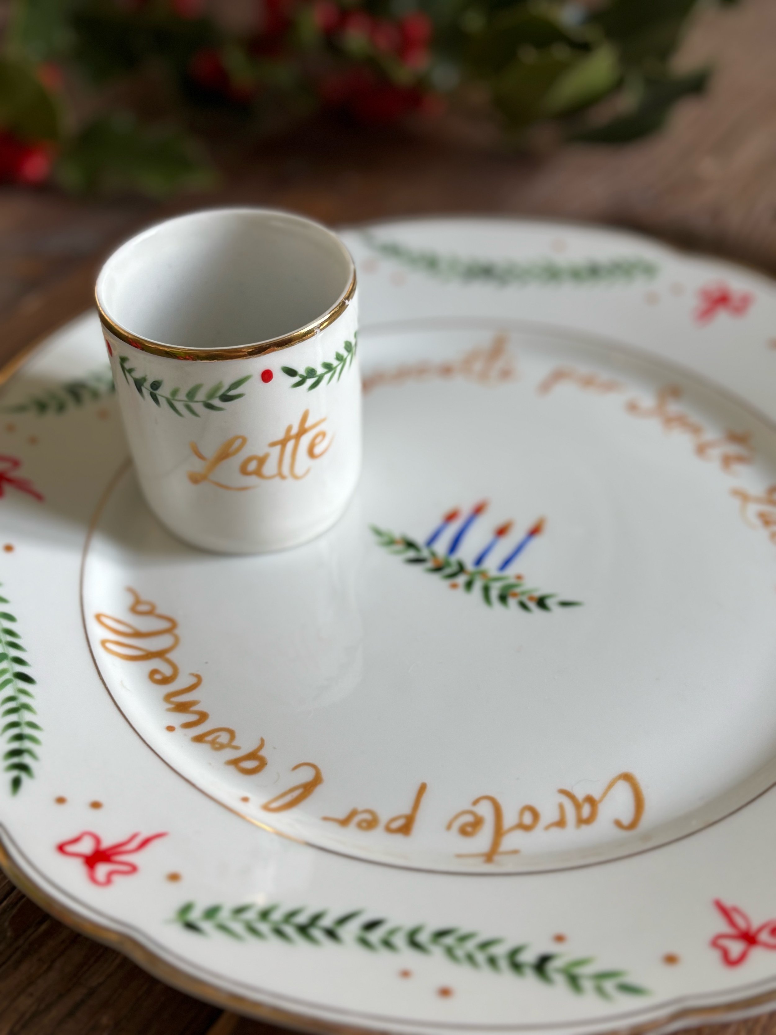 Piattino da te in porcellana dipinto a mano, marcato Table Top, made in Italy, moderno con filo oro.
