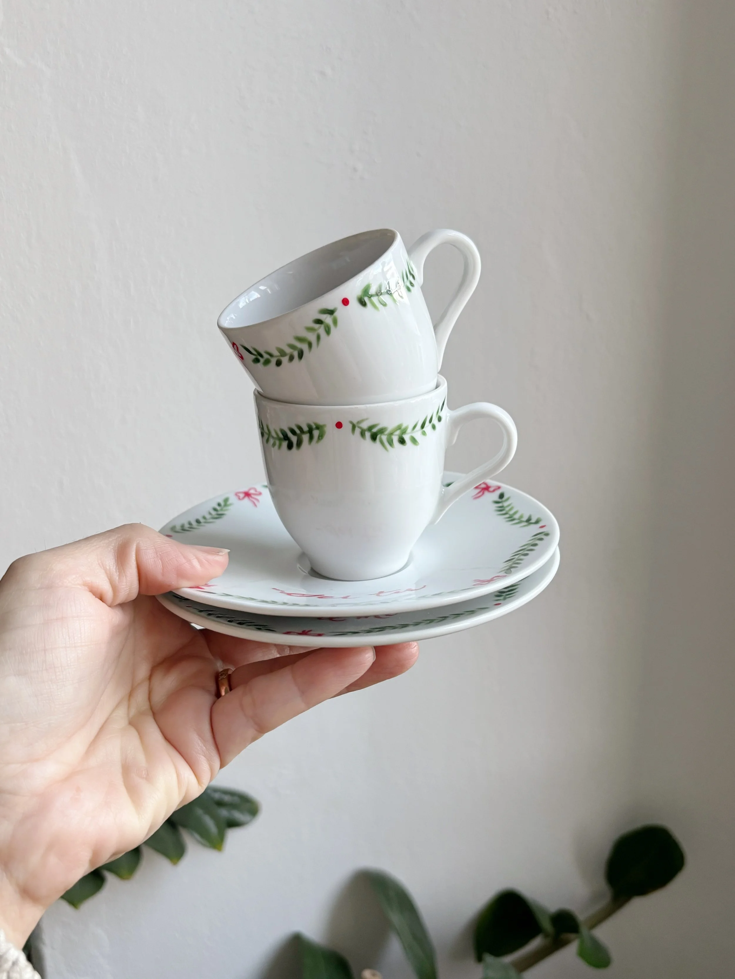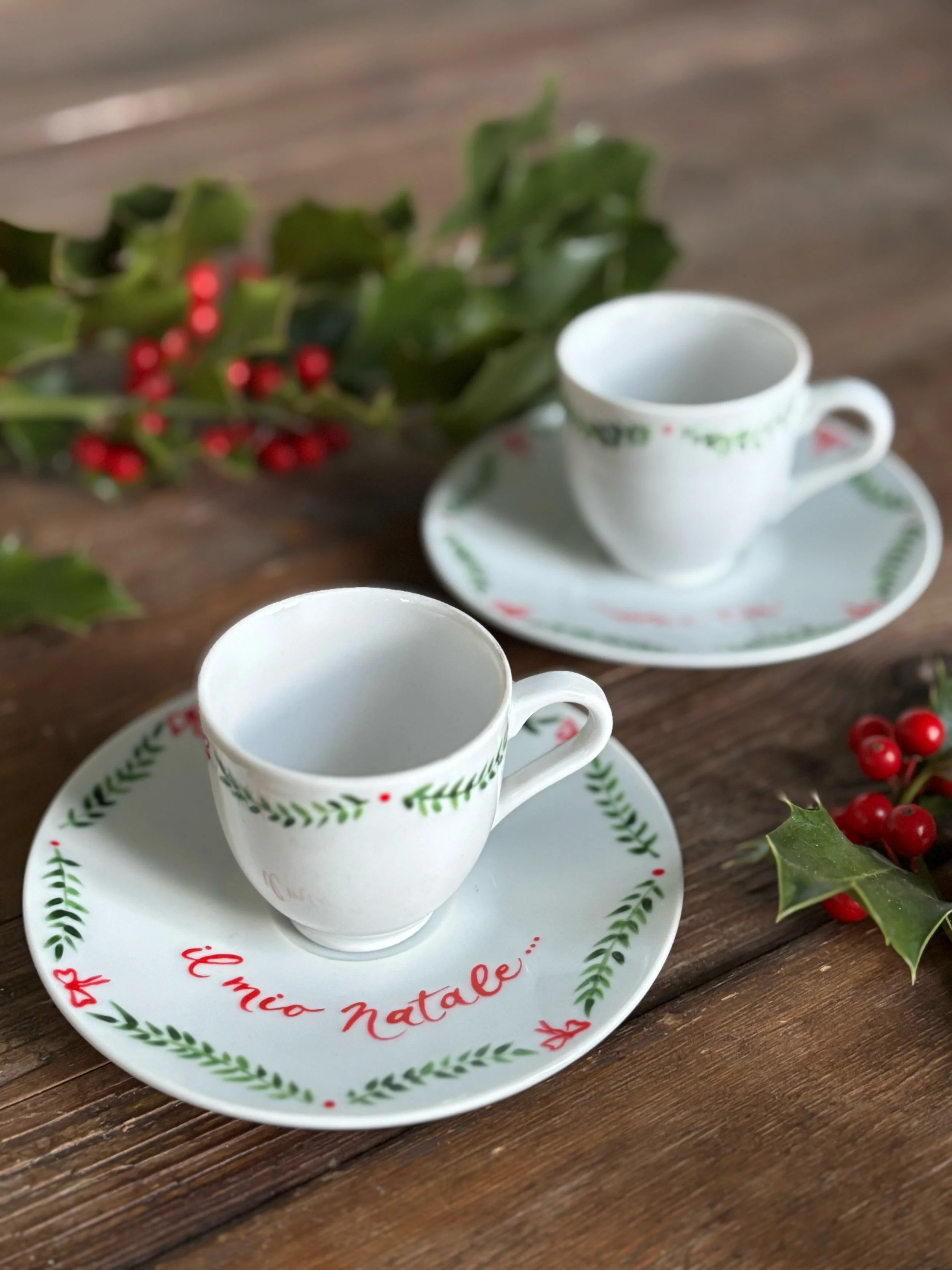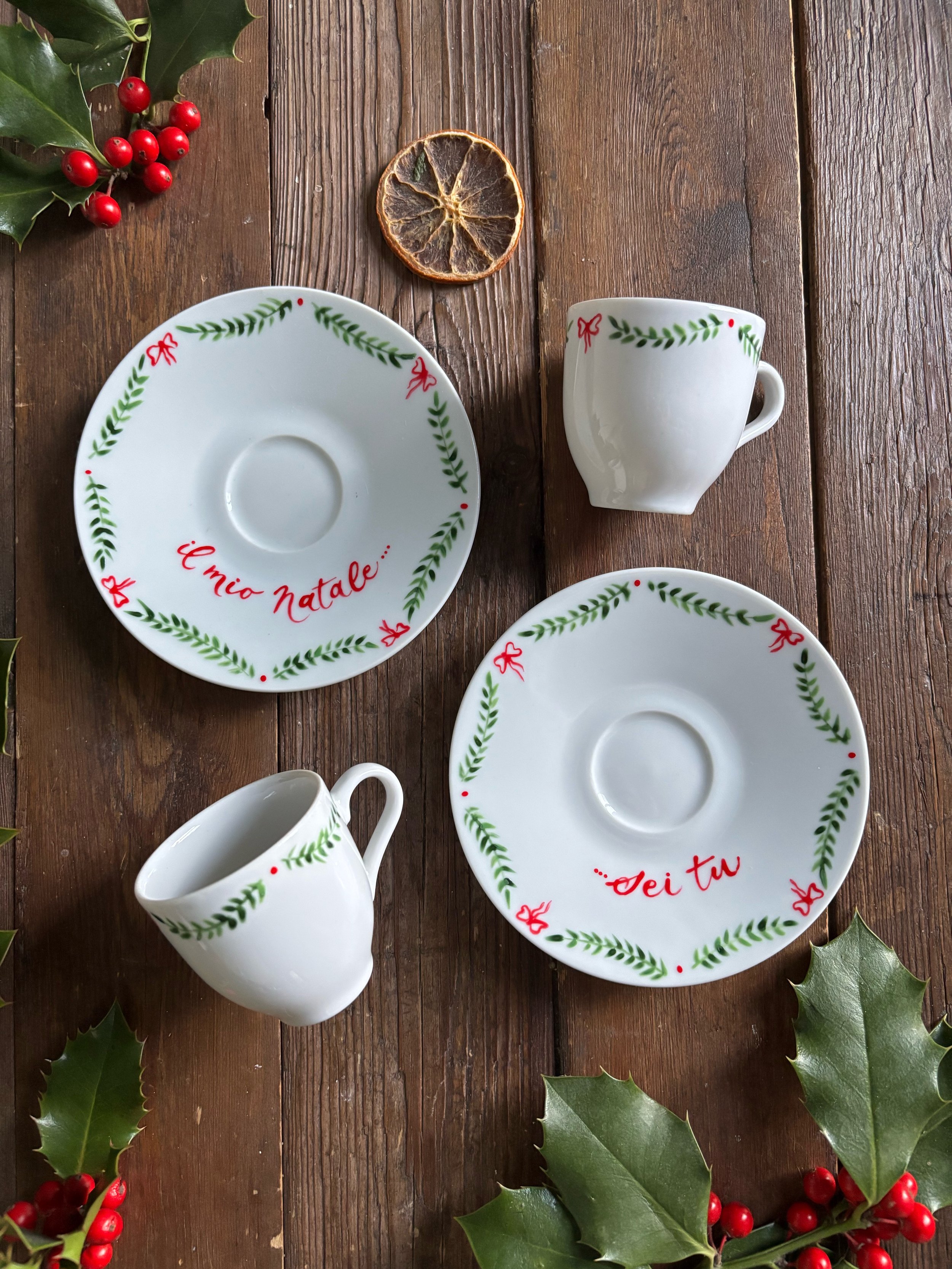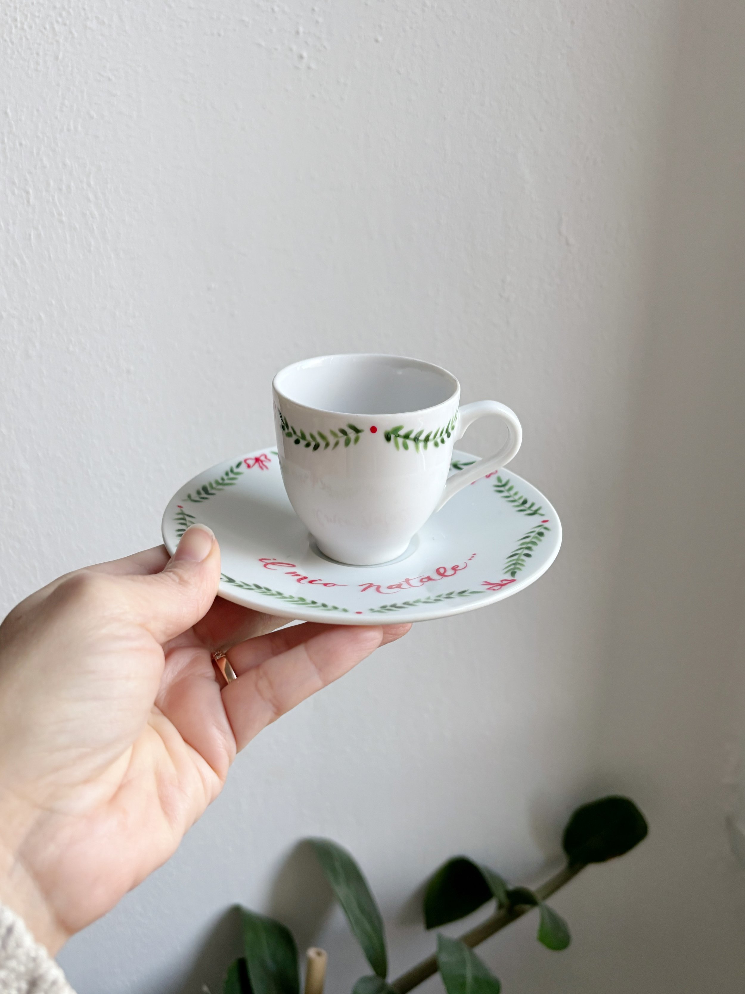 Piattino da te in porcellana dipinto a mano, marcato Table Top, made in Italy, moderno con filo oro.