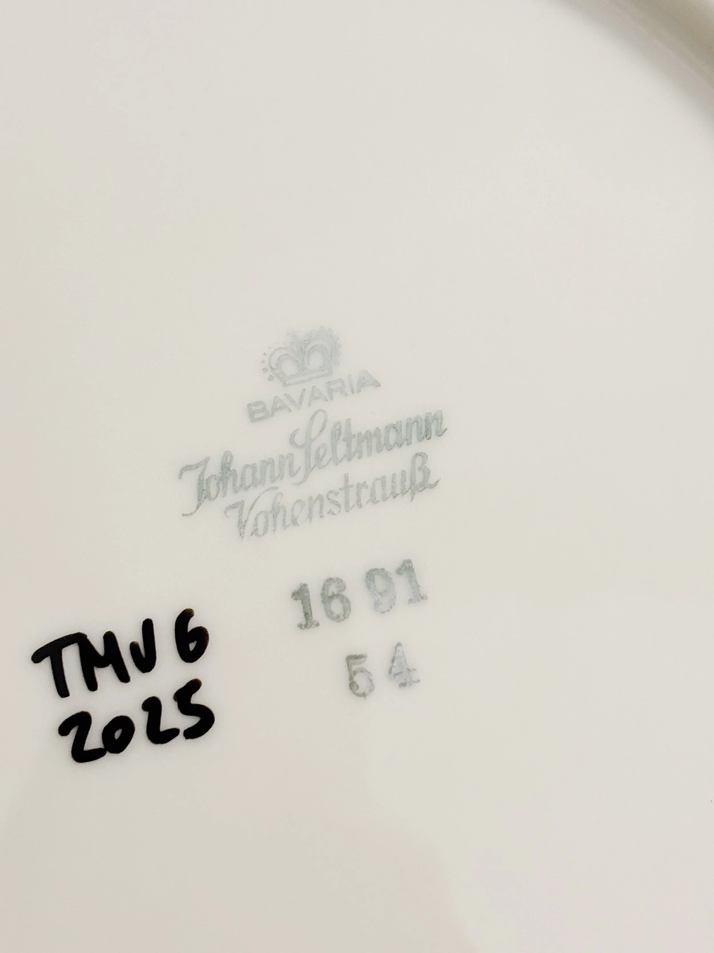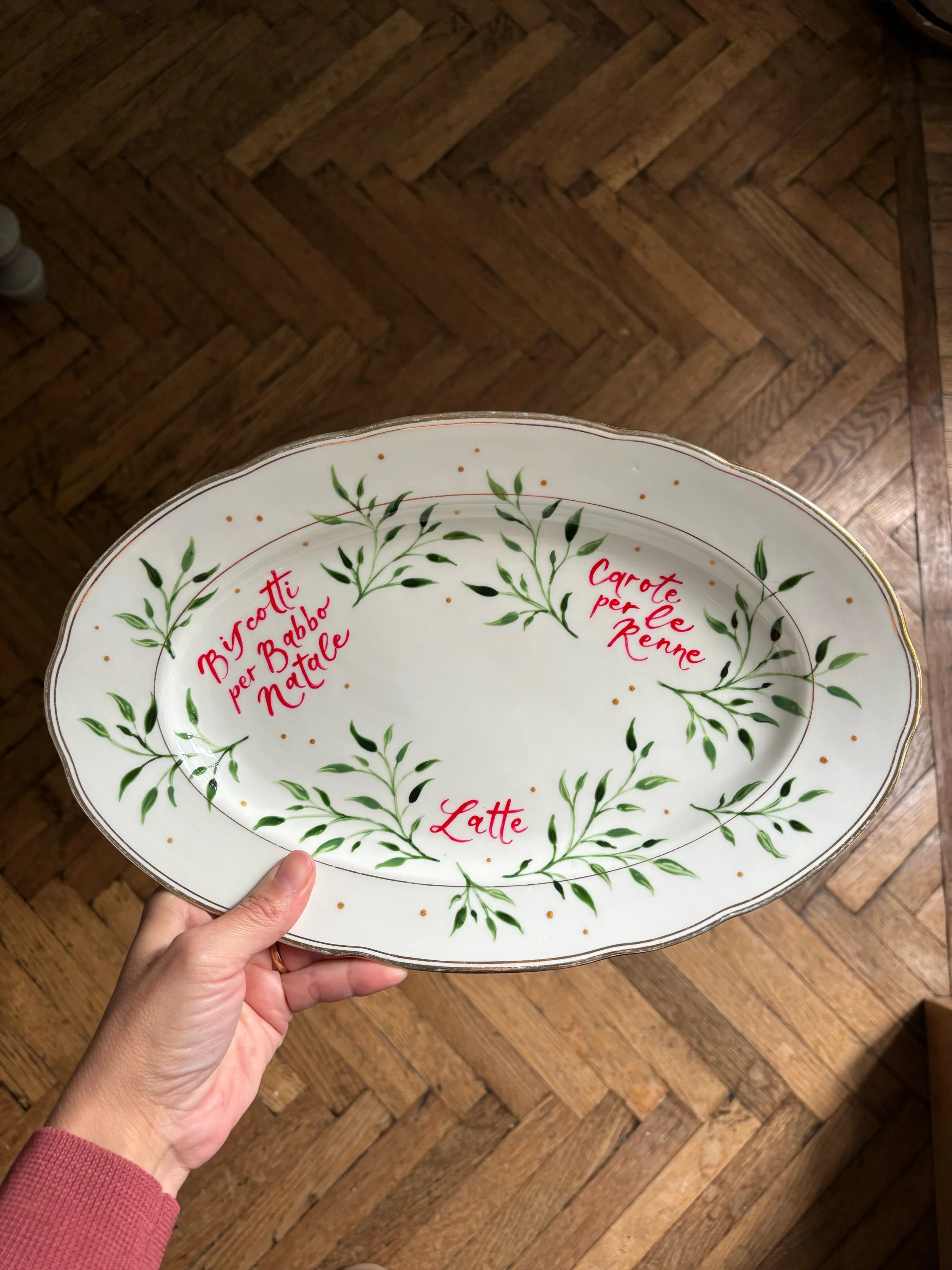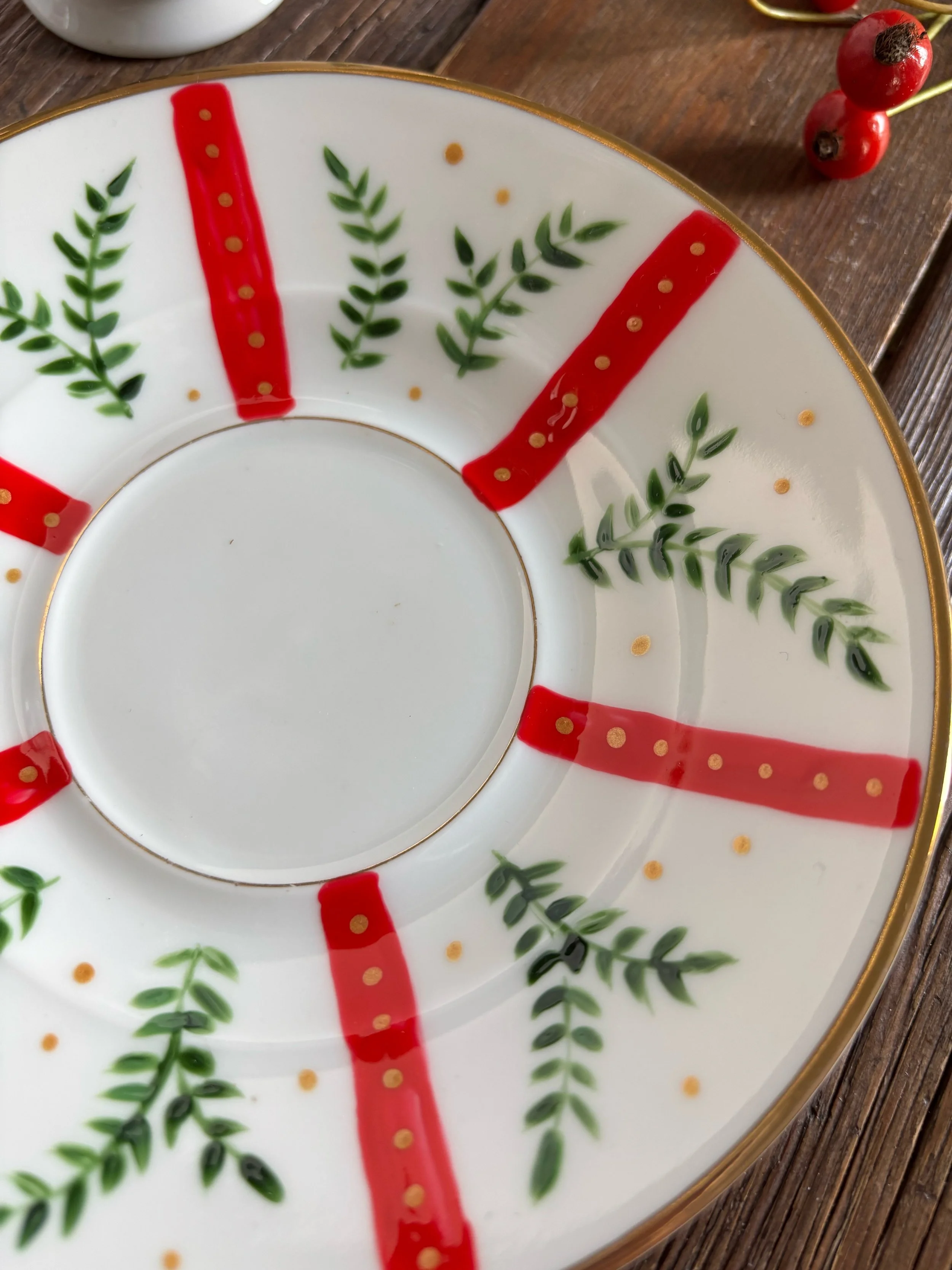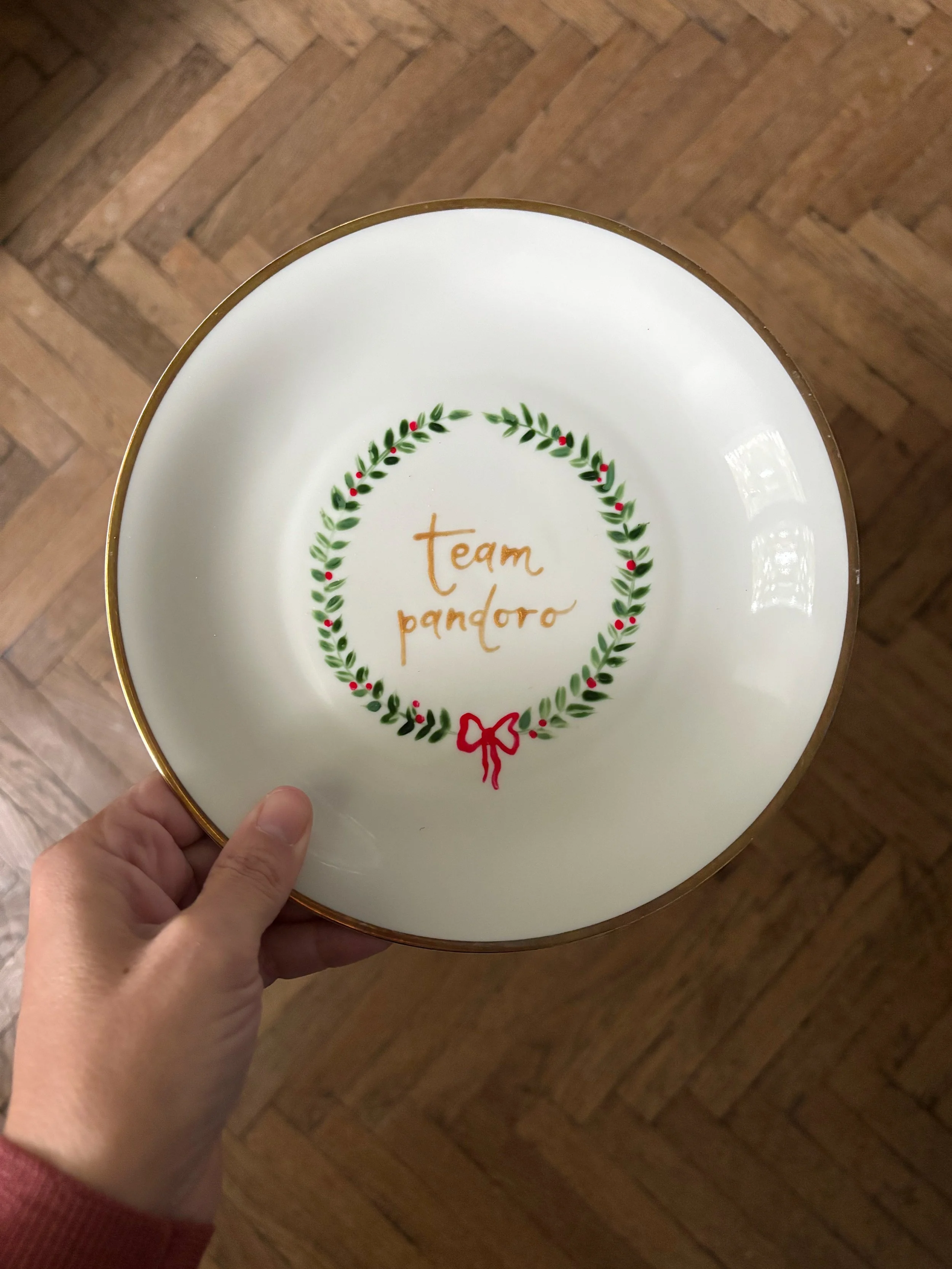 Piatto da dolce in porcellana dipinto a mano, marcato Del Vivo Sesto, Firenze, produzione tra gli anni ‘30 e ‘40 del 900, con filo oro.