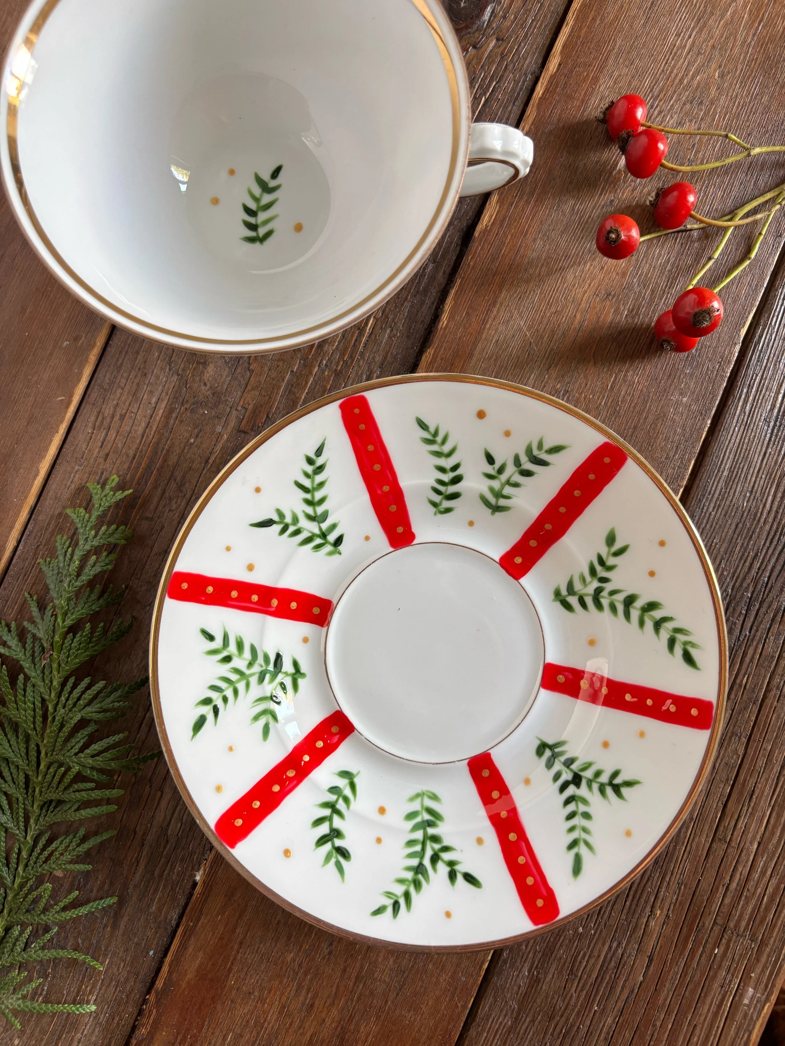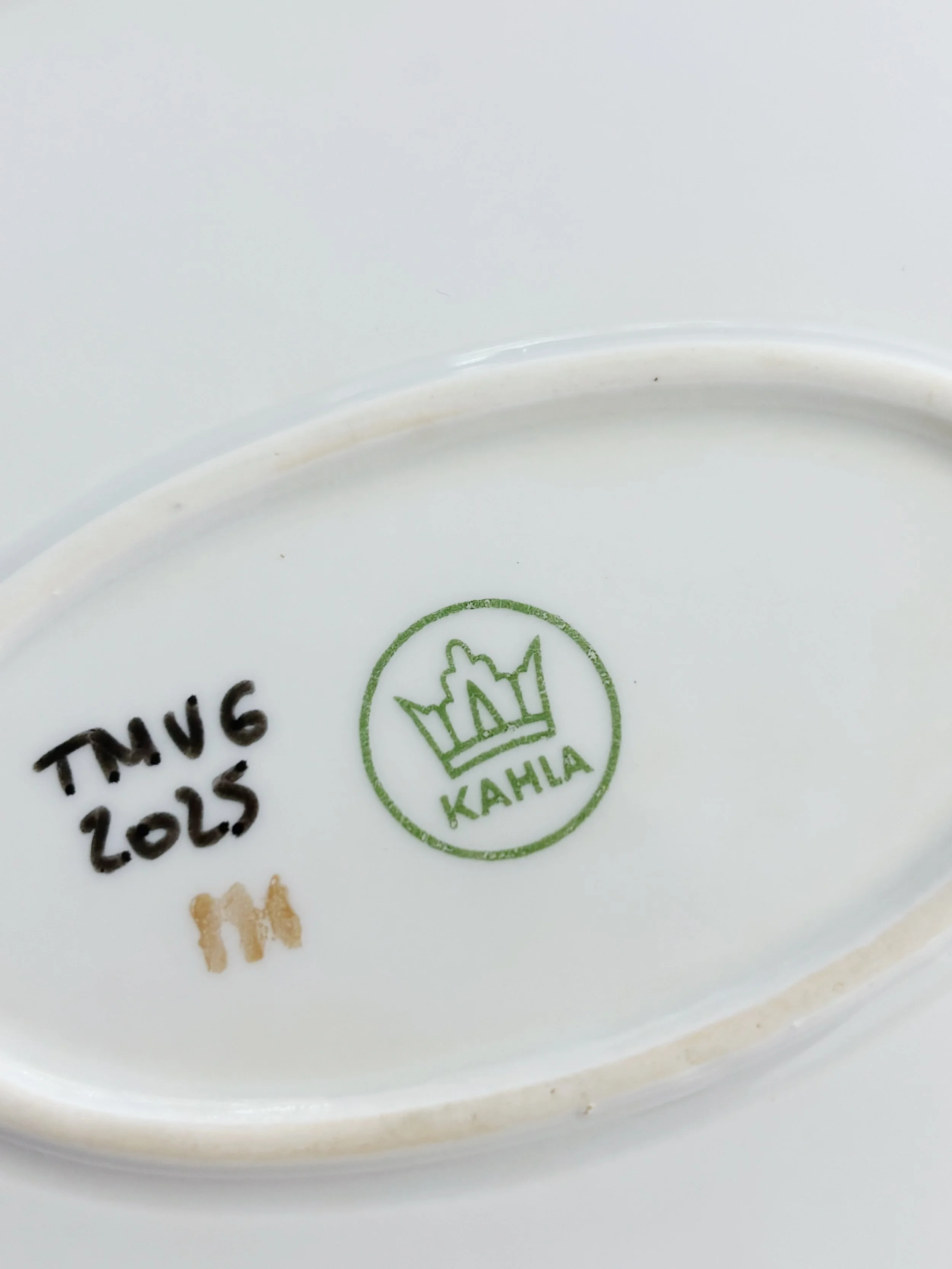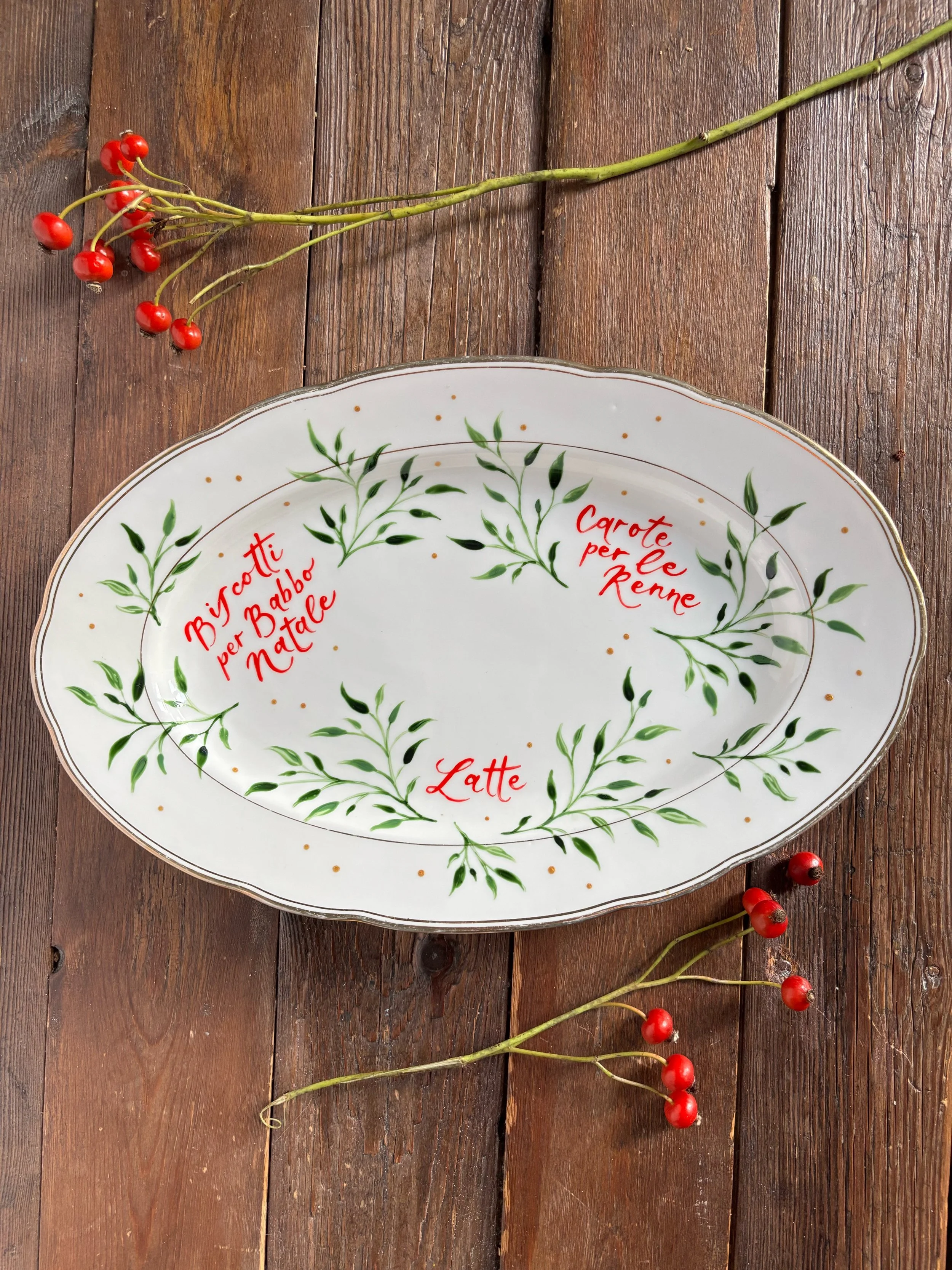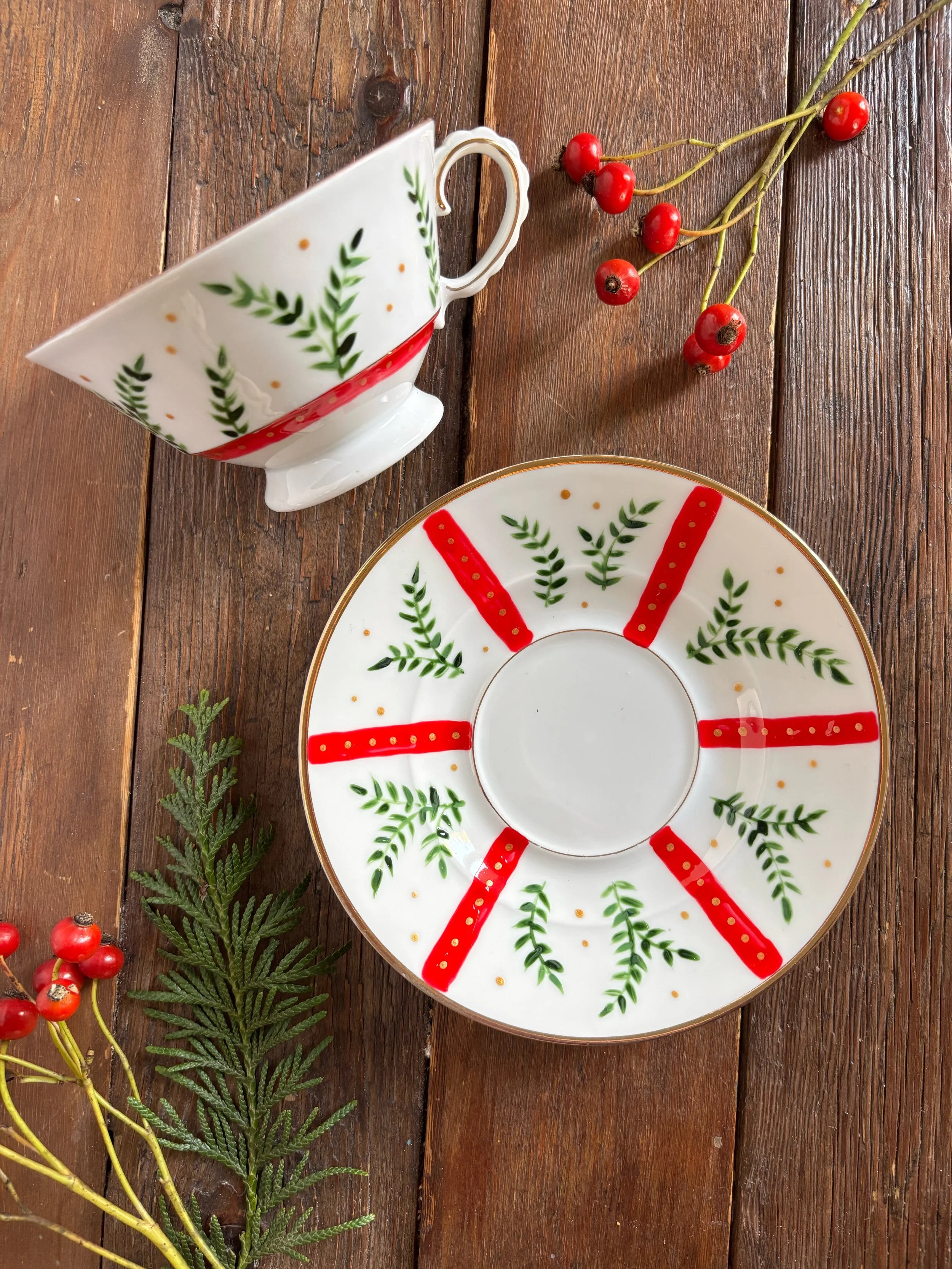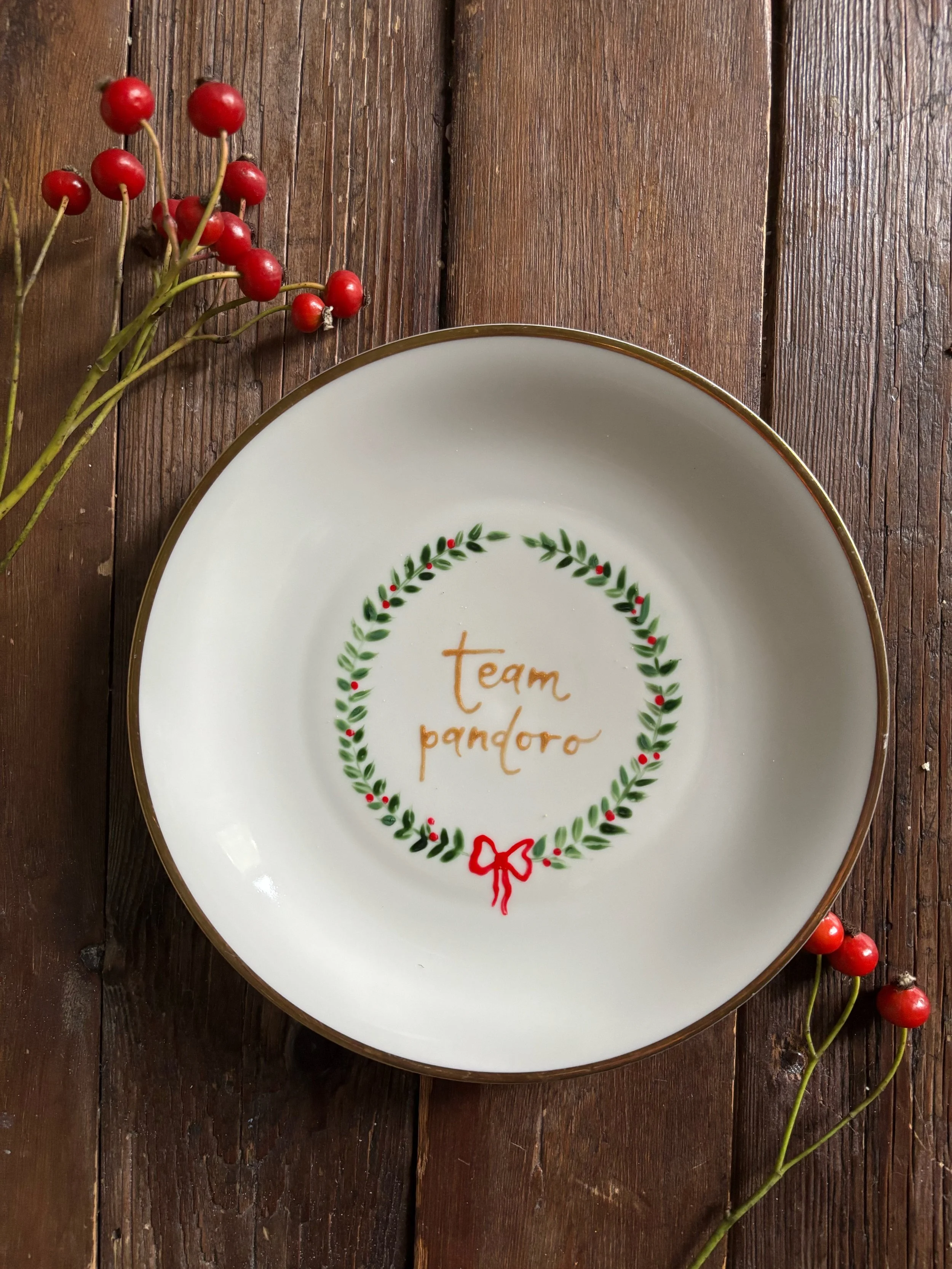 Piatto da dolce in porcellana dipinto a mano, marcato Del Vivo Sesto, Firenze, produzione tra gli anni ‘30 e ‘40 del 900, con filo oro.
