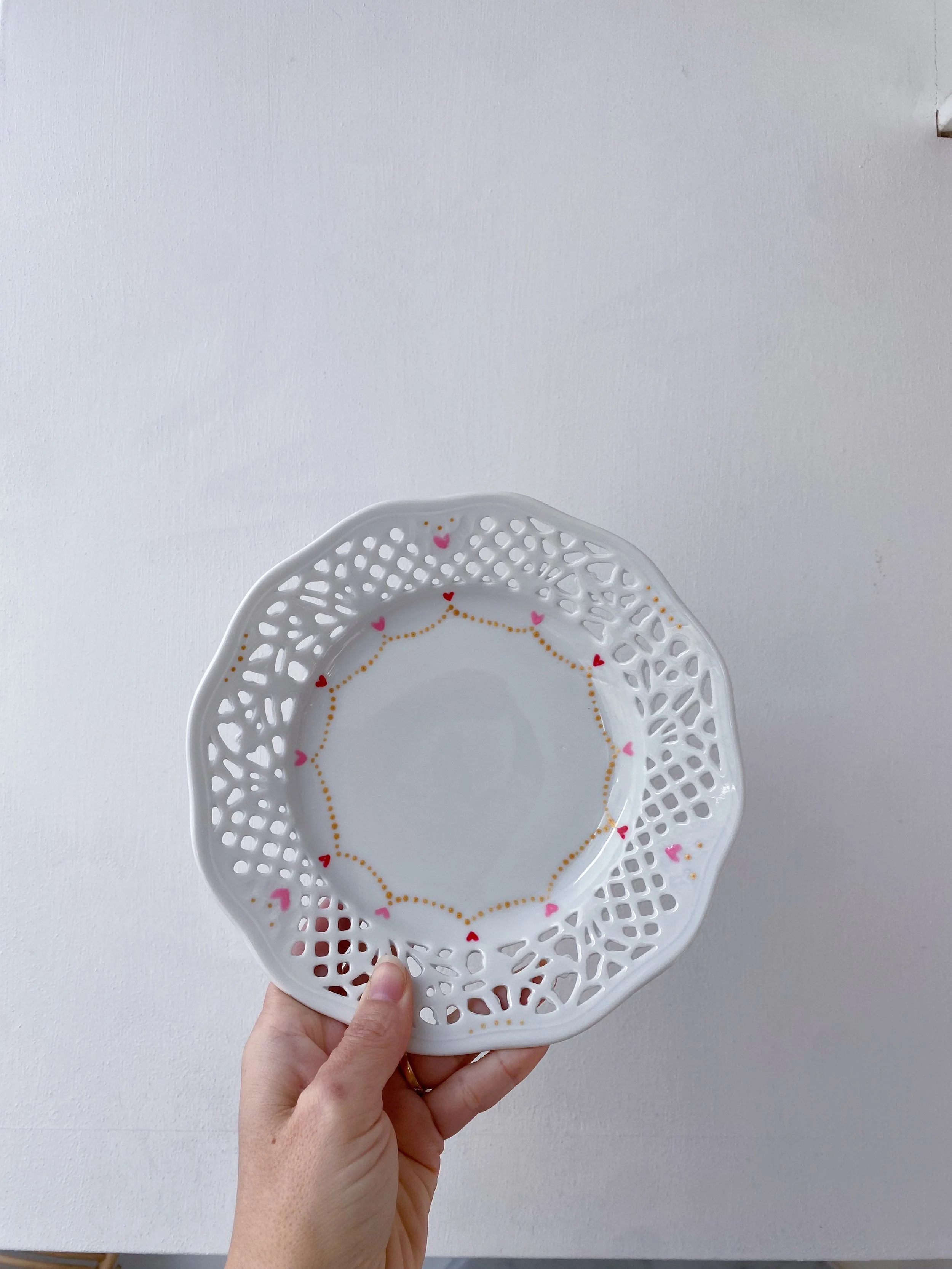Piatto fondo in porcellana dipinto a mano, marcato Del Vivo Sesto, Firenze, produzione tra gli anni ‘30 e ‘40 del 900, con filo oro.