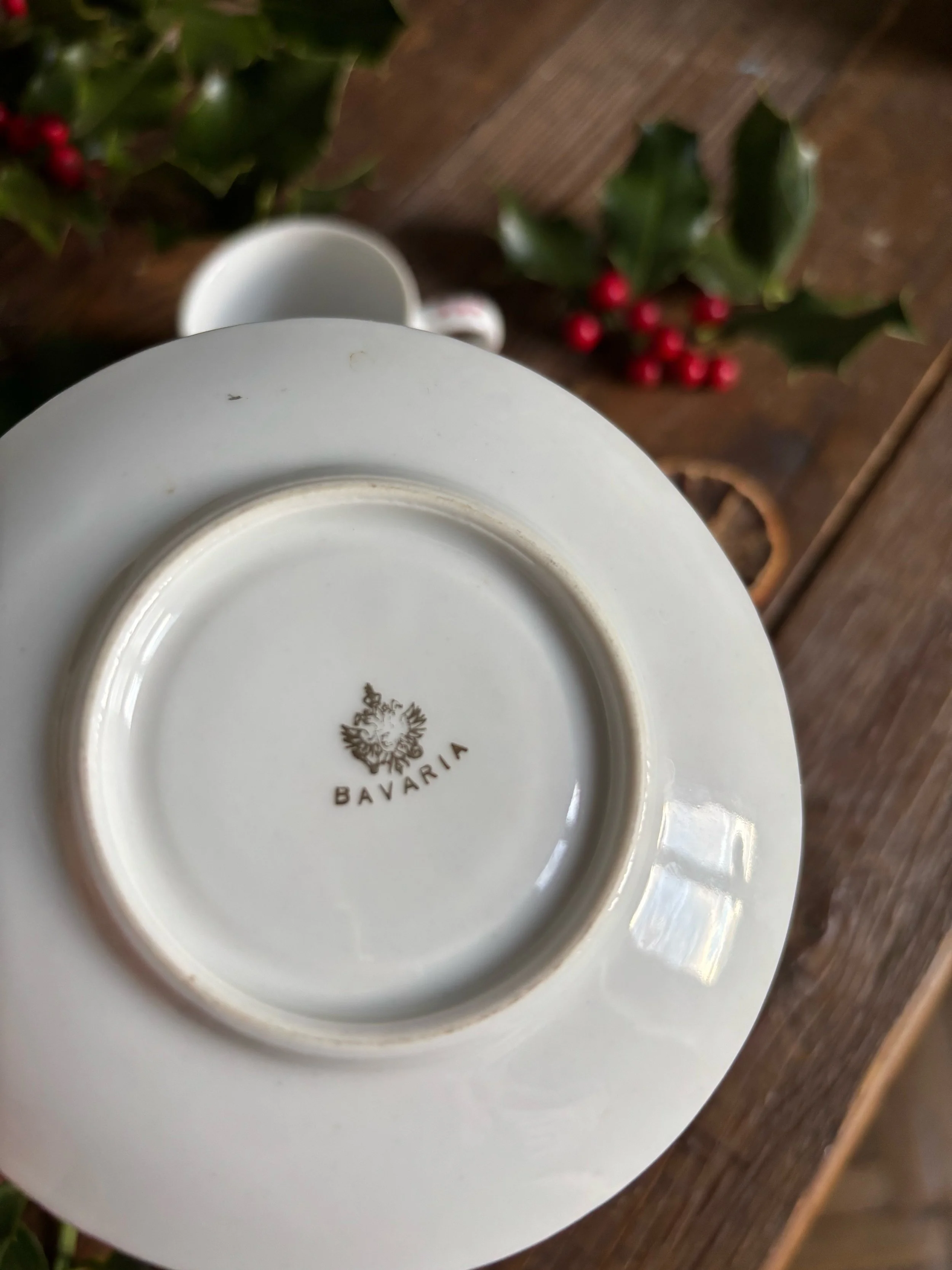 Piatto piano, in porcellana dipinto a mano, marcato “Sesto Del Vivo, Firenze”, realizzato nel 1950, filo oro.