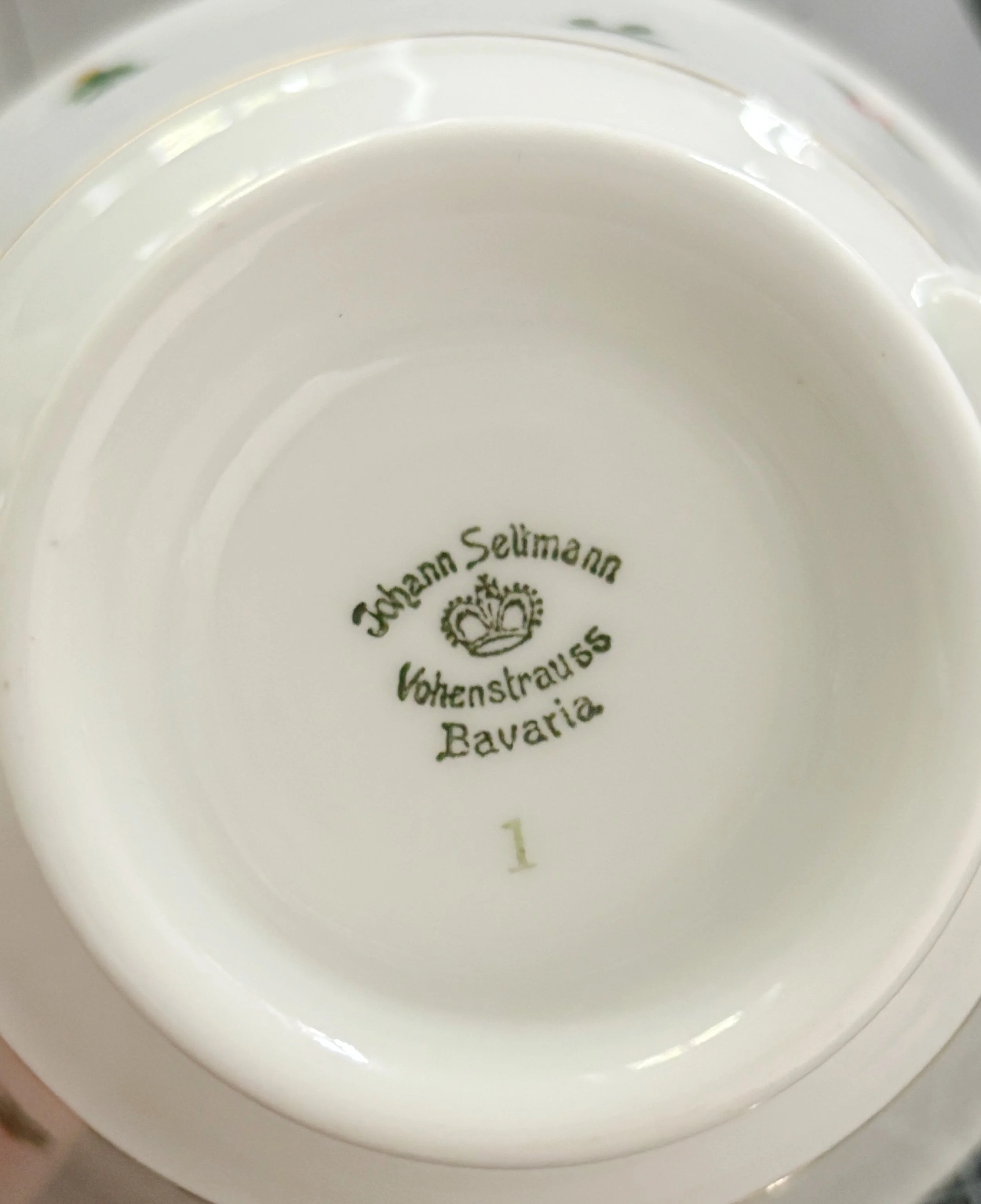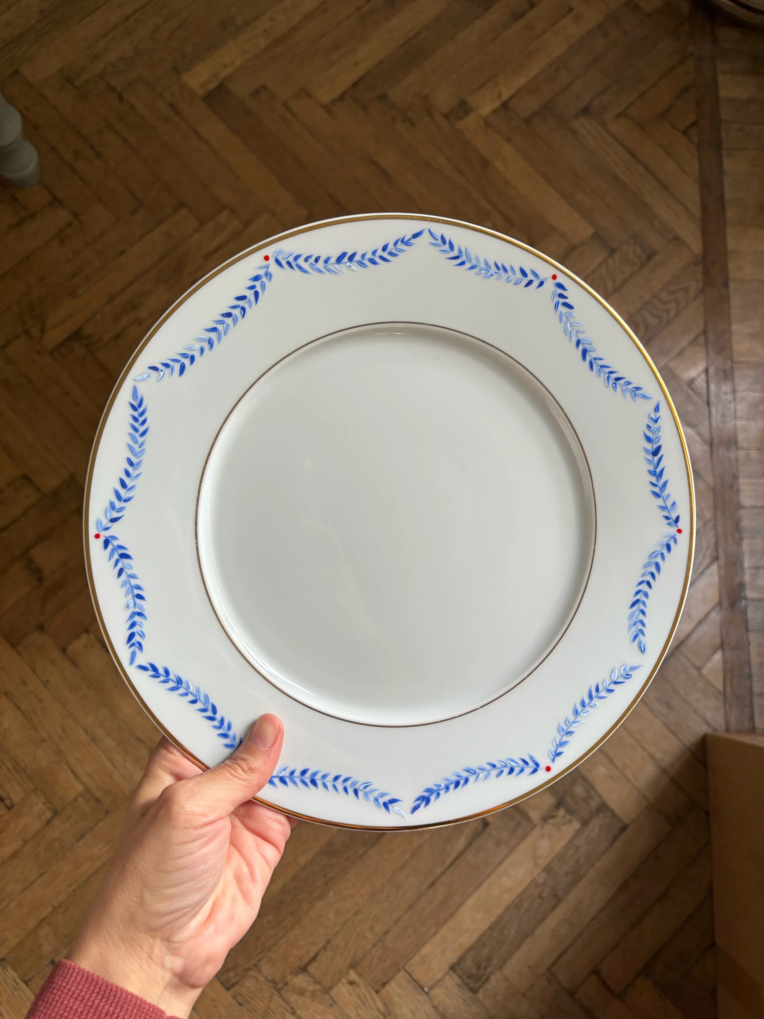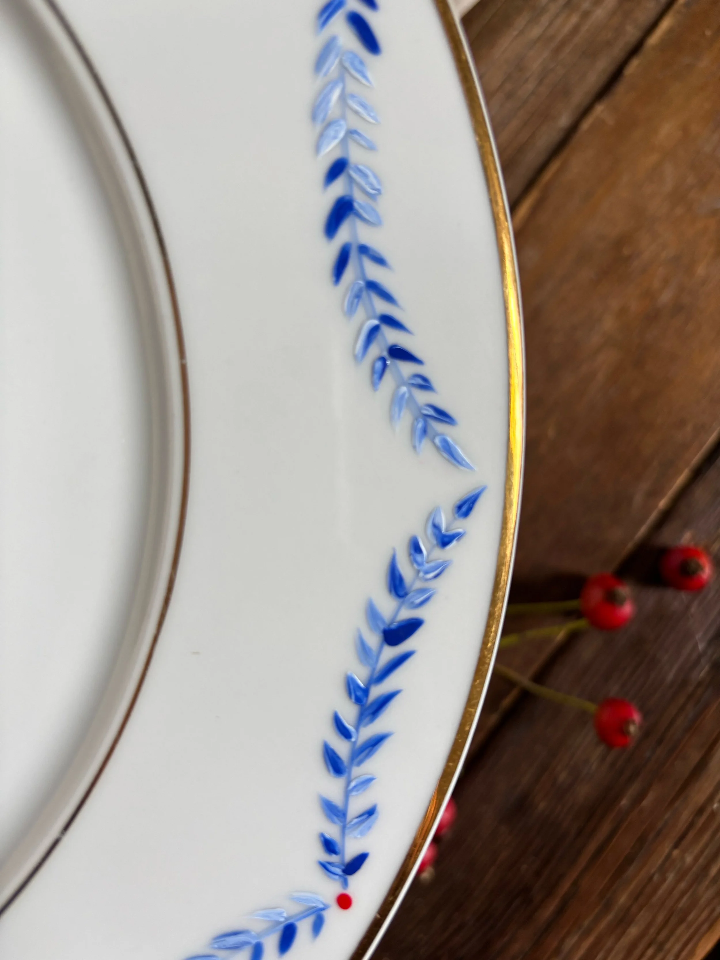 Vassoietto ovale, in porcellana dipinto a mano, marcato Veritable L F Porcelaine, parte della produzione Limonge tra gli anni ‘50 e ‘60 del 900, con filo oro.