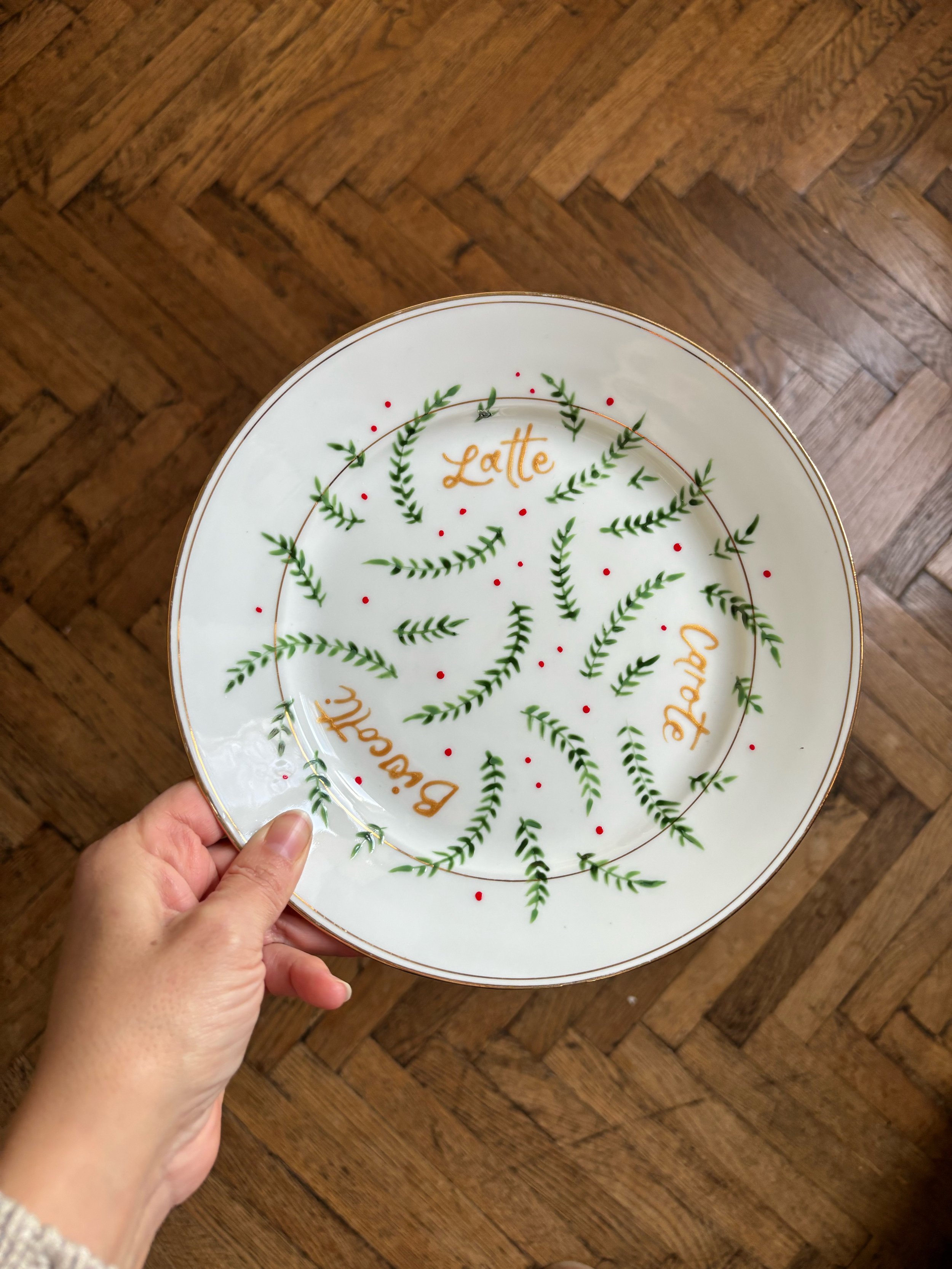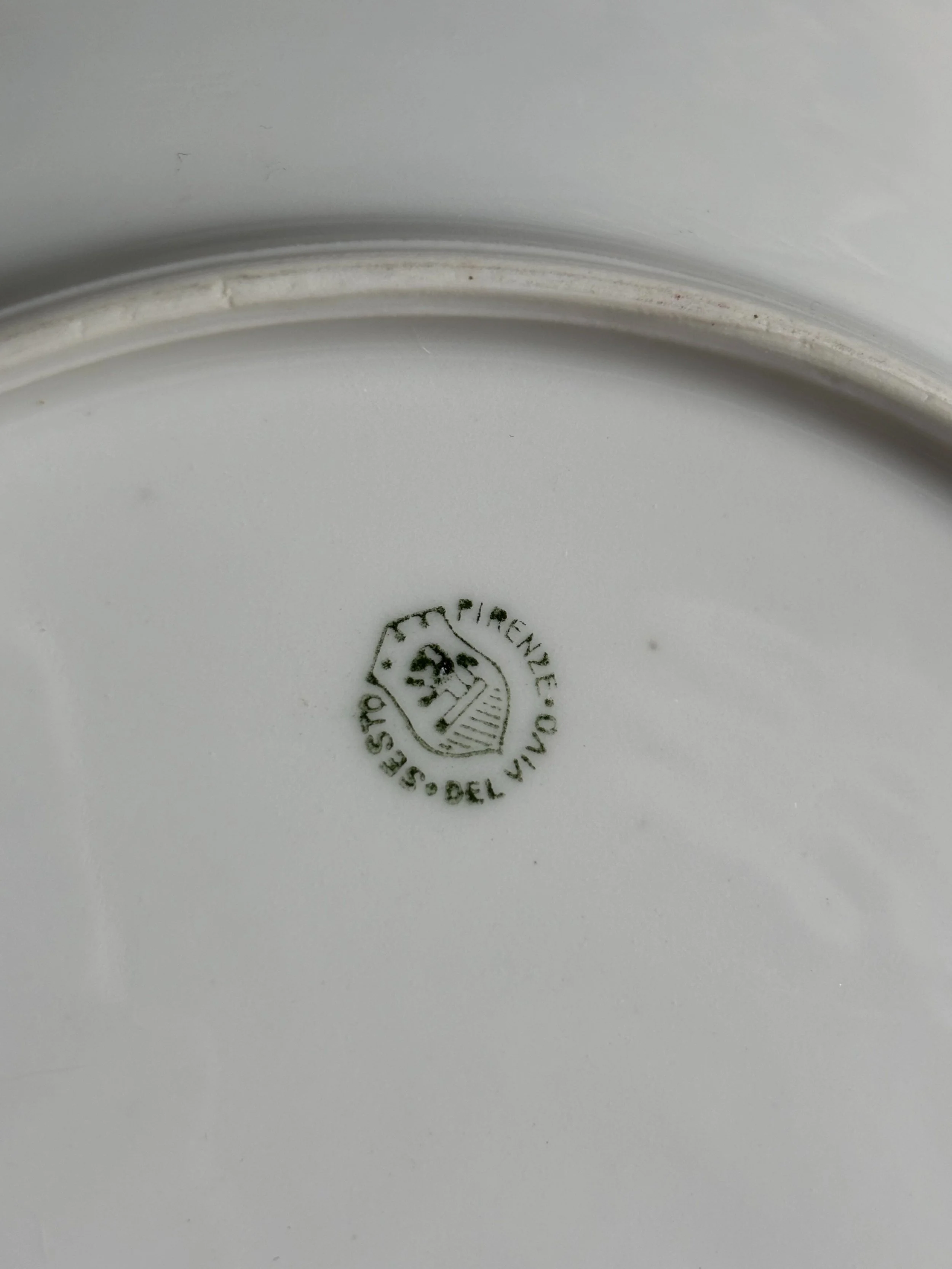 Vassoio ovale, in porcellana dipinto a mano, marcato S.C. Richard, prodotto tra la fine dell’800 e i primissimi anni del 900, con filo oro.