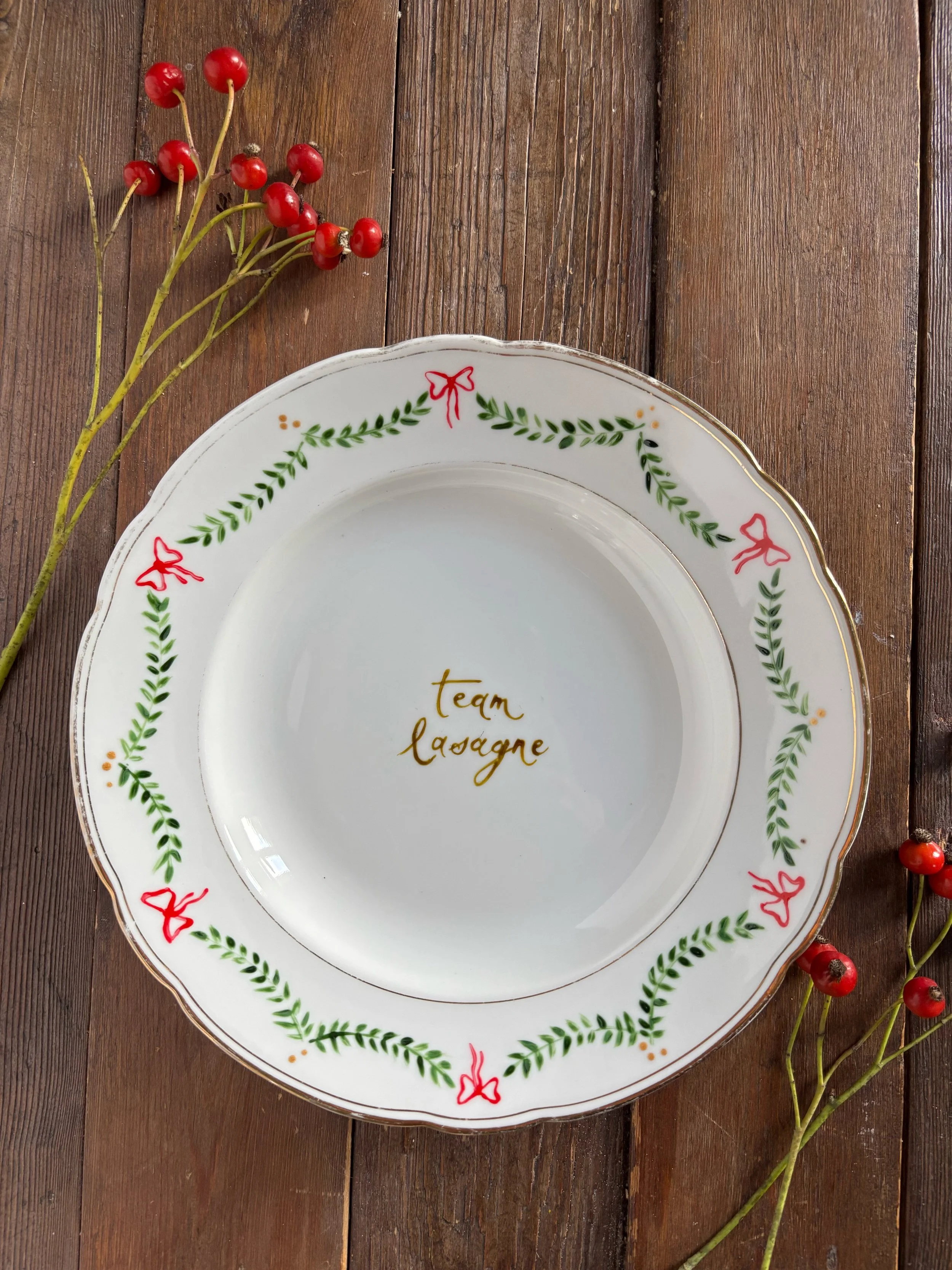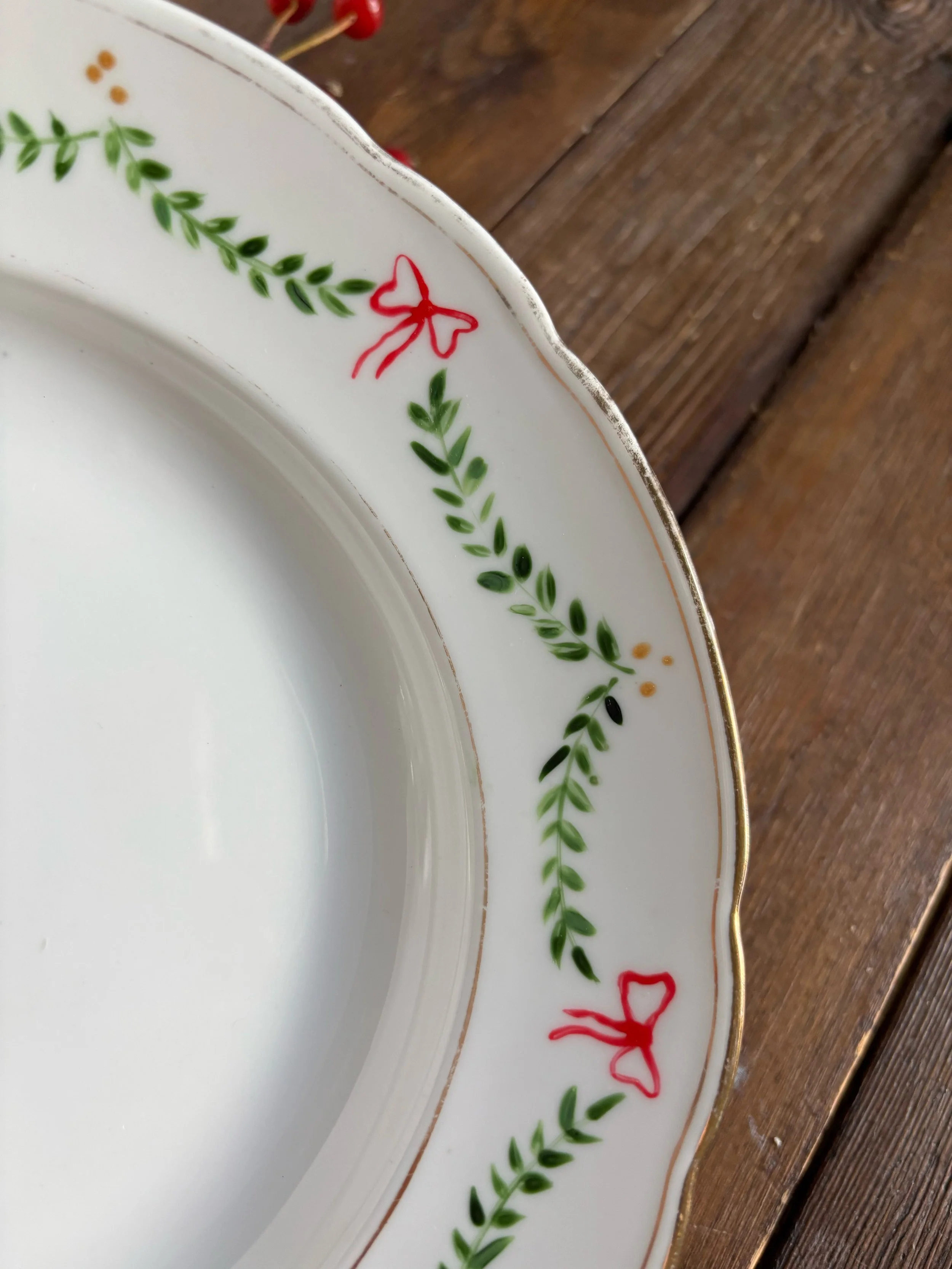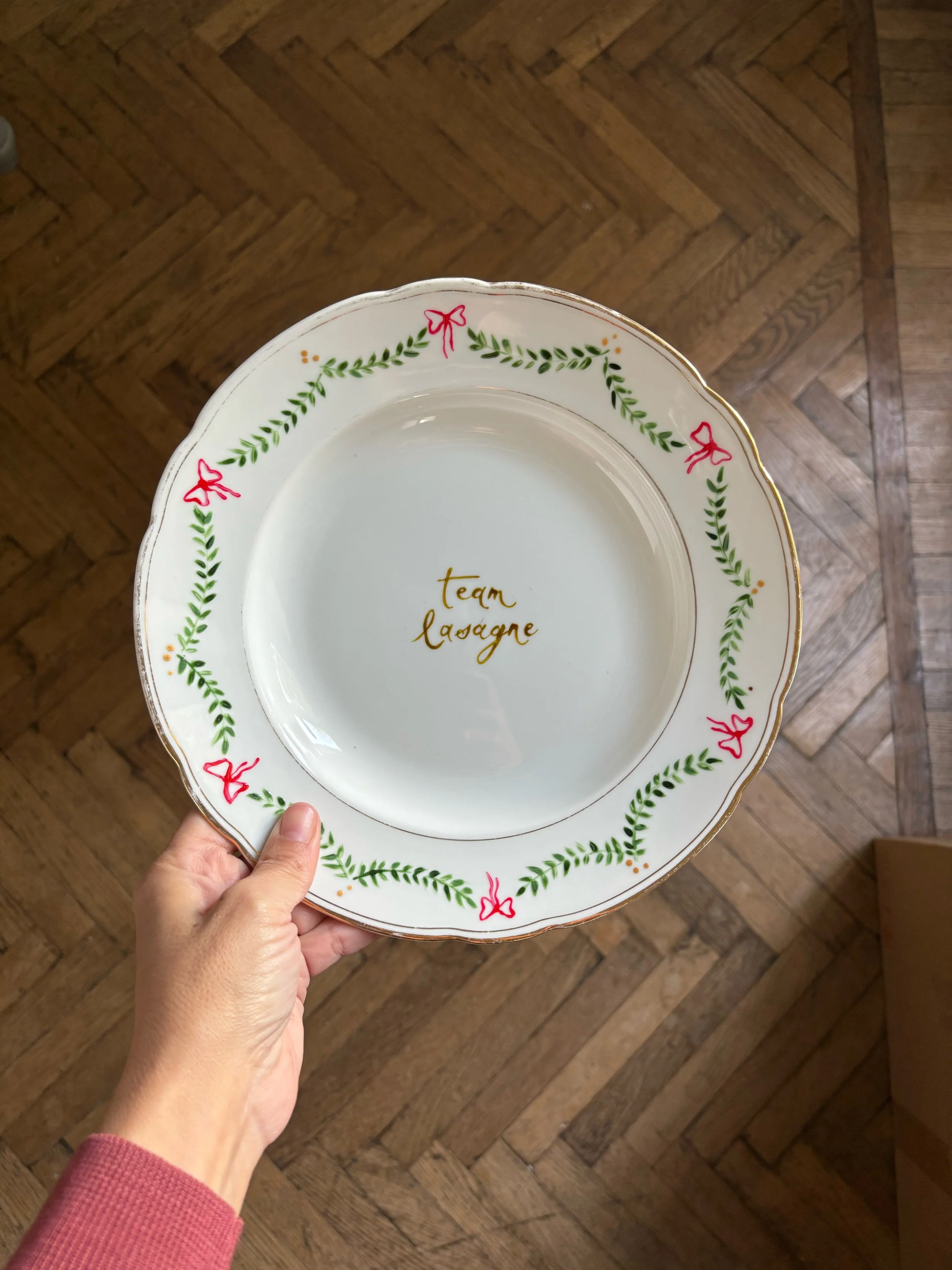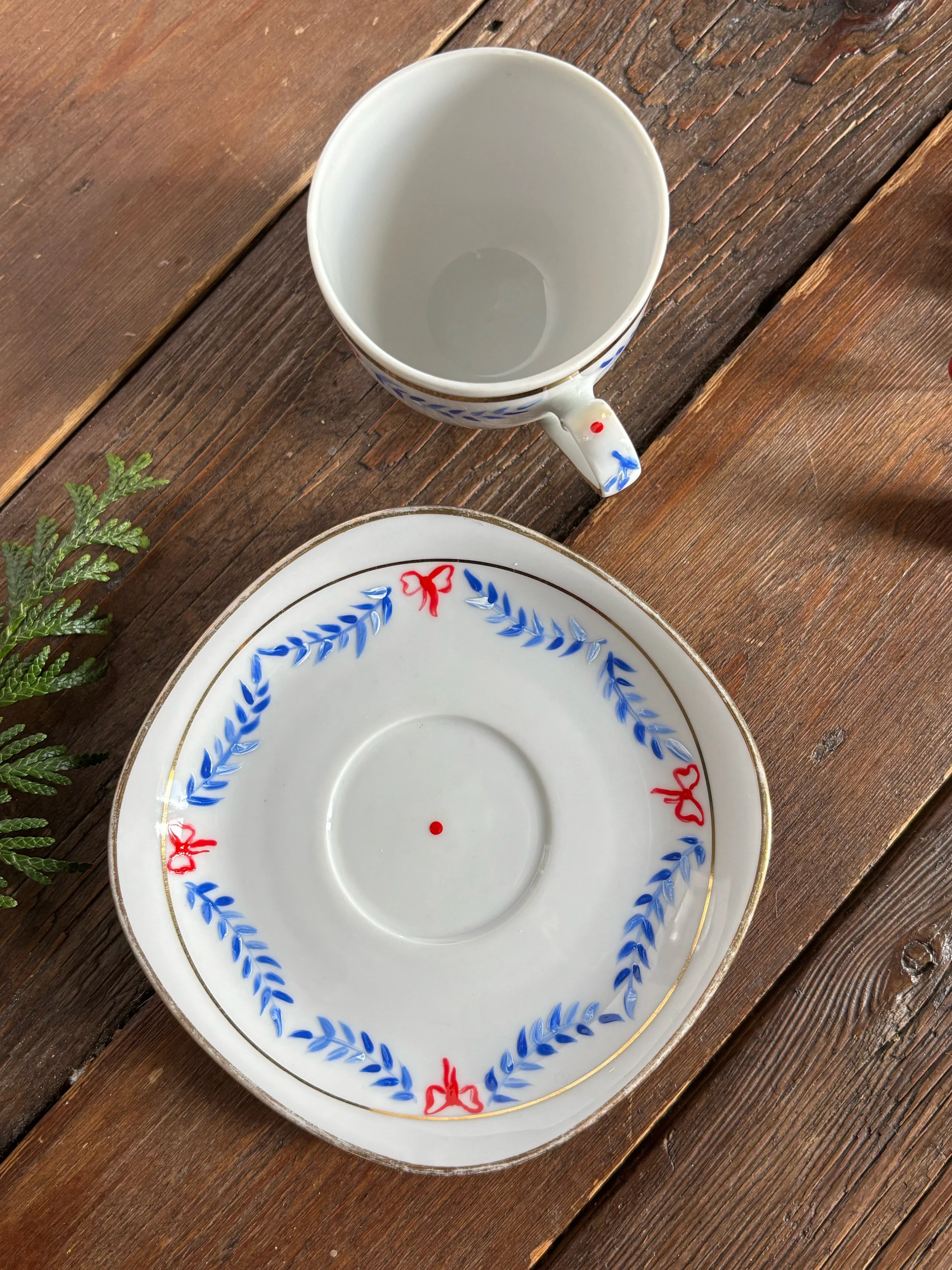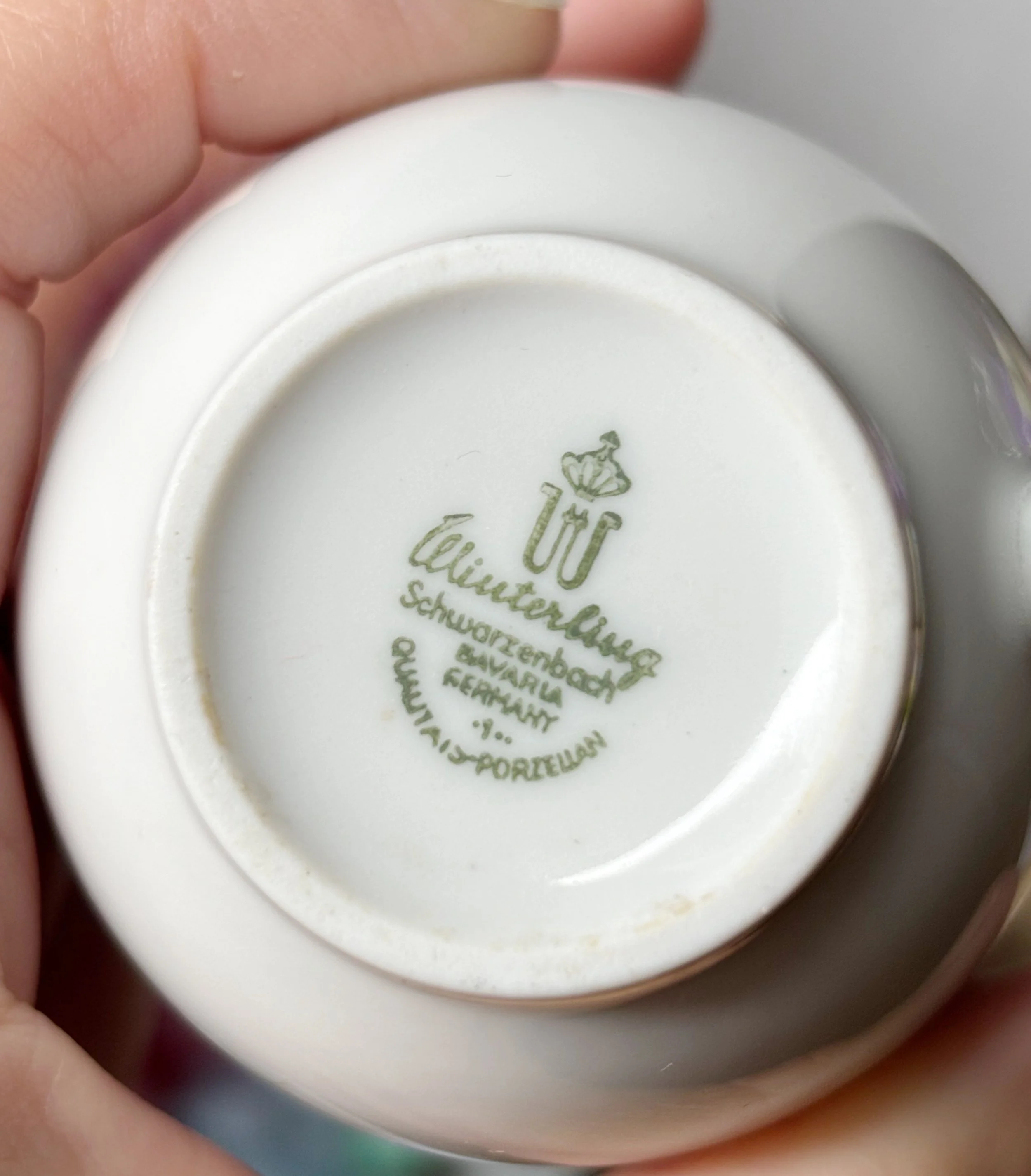 Ciotola fonda di forma quadrata, in porcellana dipinto a mano, marcato Famag the Empire Bavaria, made in Germay prodotto interno agli anni ‘50 del 900, con filo oro.