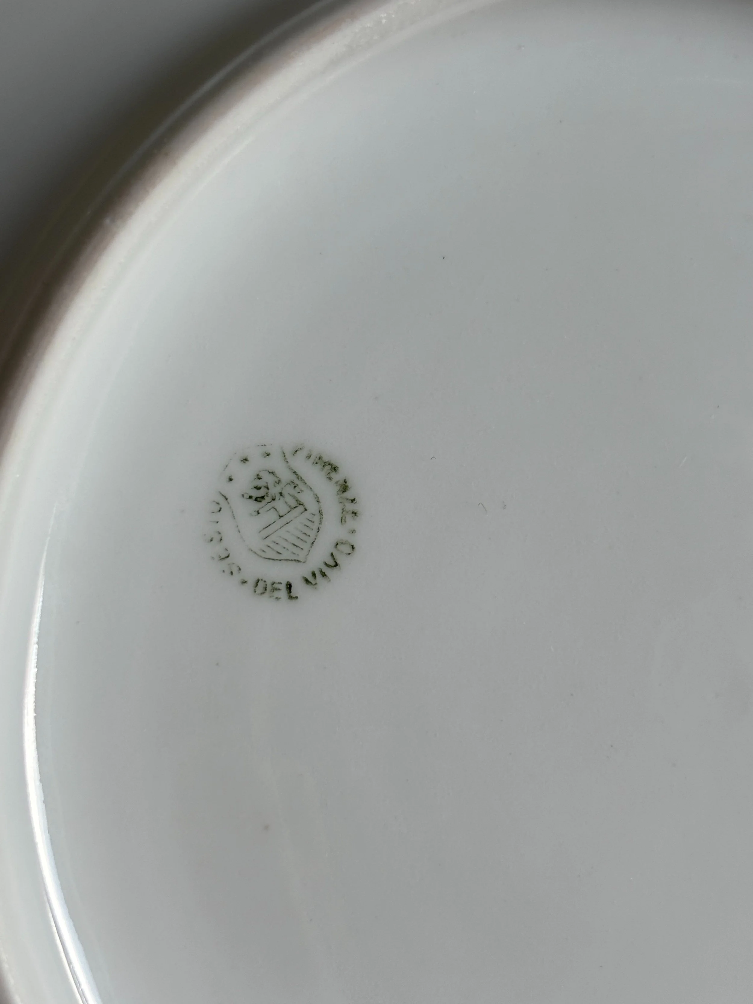 Ciotola fonda di forma quadrata, in porcellana dipinto a mano, marcato B G K, made in Germay prodotto intorno agli anni ‘50 del 900, con filo oro.