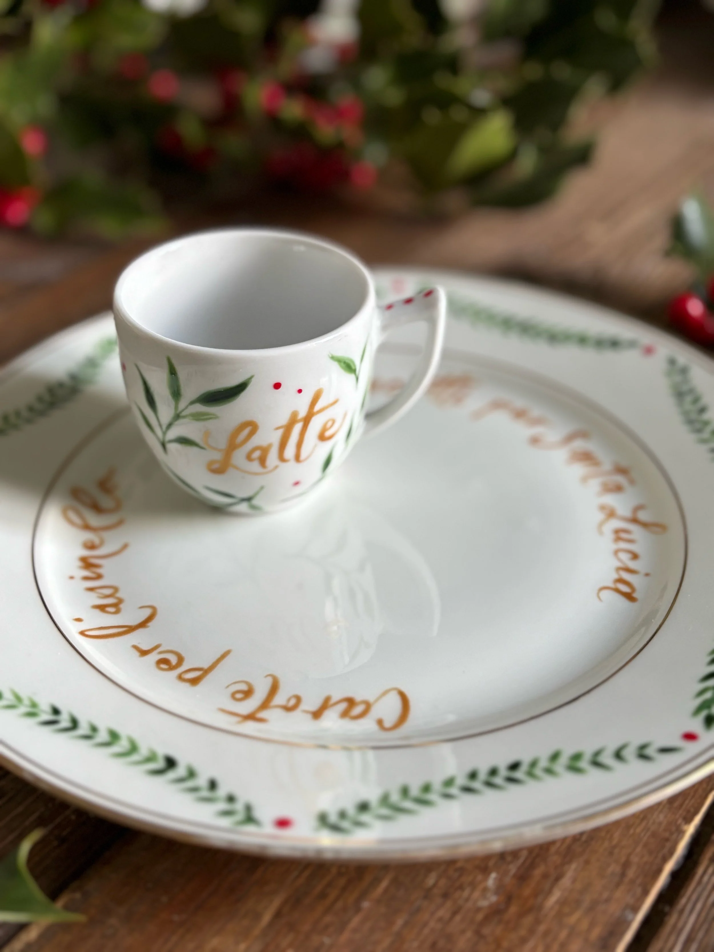 Misura tazza: diametro 6,2 cm, altezza 6 cm, larghezza 8,2 cm Misura piatto: diametro 12,5 cm