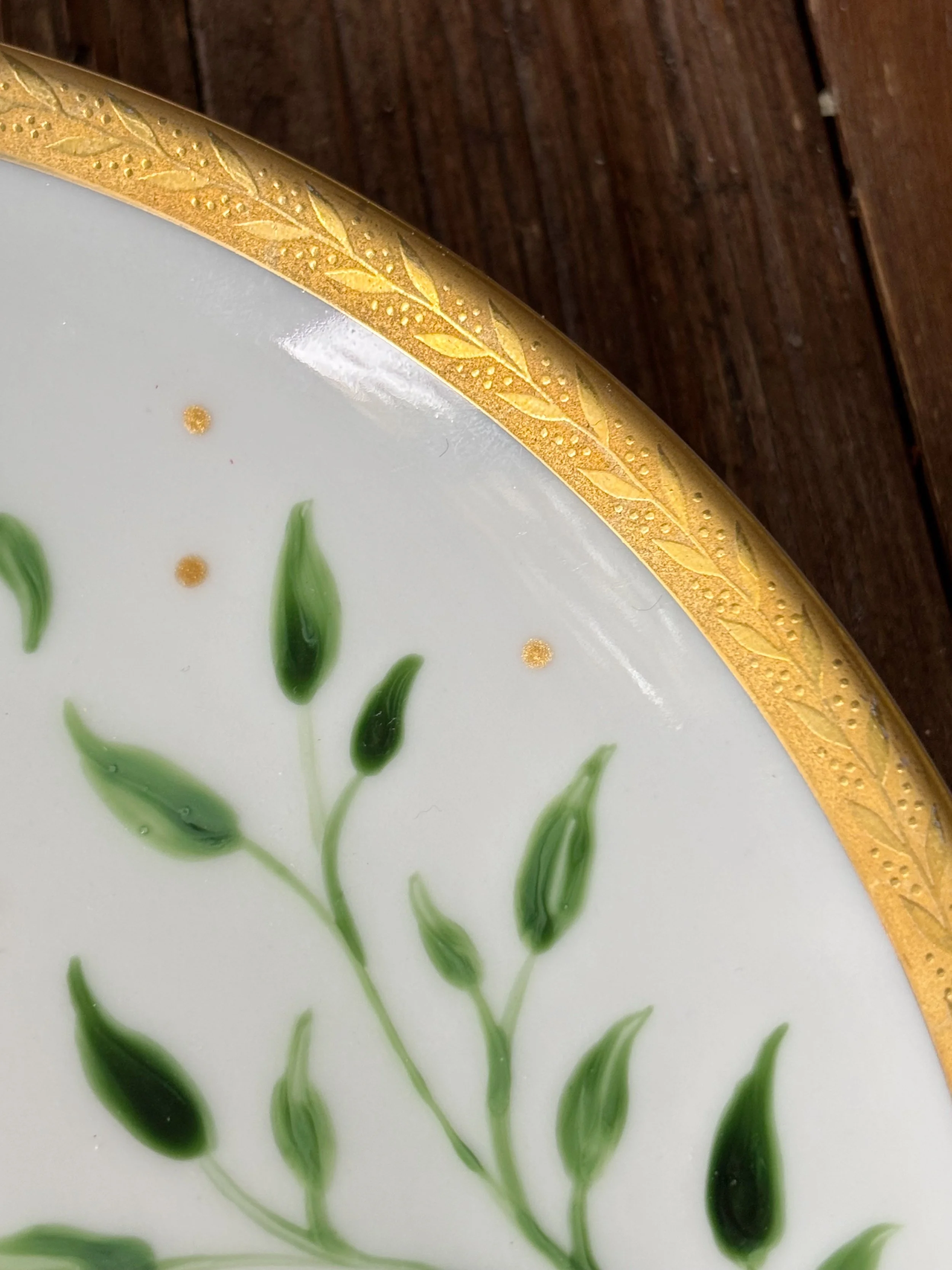 Set composto da tazzina da caffè e piattino leggermente squadrato in porcellana dipinta a mano, marcata Winterling Schwarzenbach, Bavaria Germany, realizzata negli anni ‘50 del ‘900, filo oro.